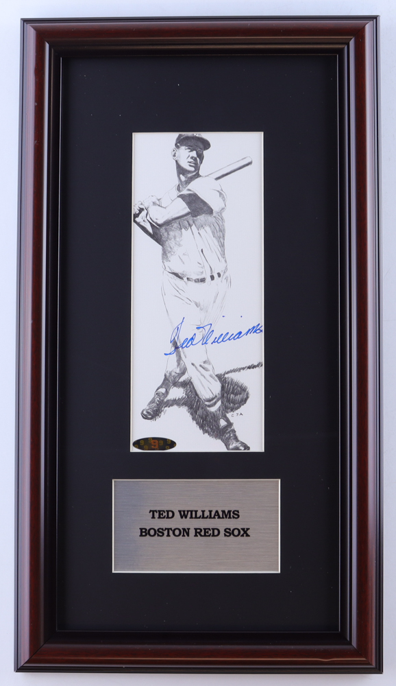 Custom frame measures approximately 10" x 18" in size and features an art print that has been hand-signed by Ted Williams (D. 2002, Boston Red Sox, HOF).