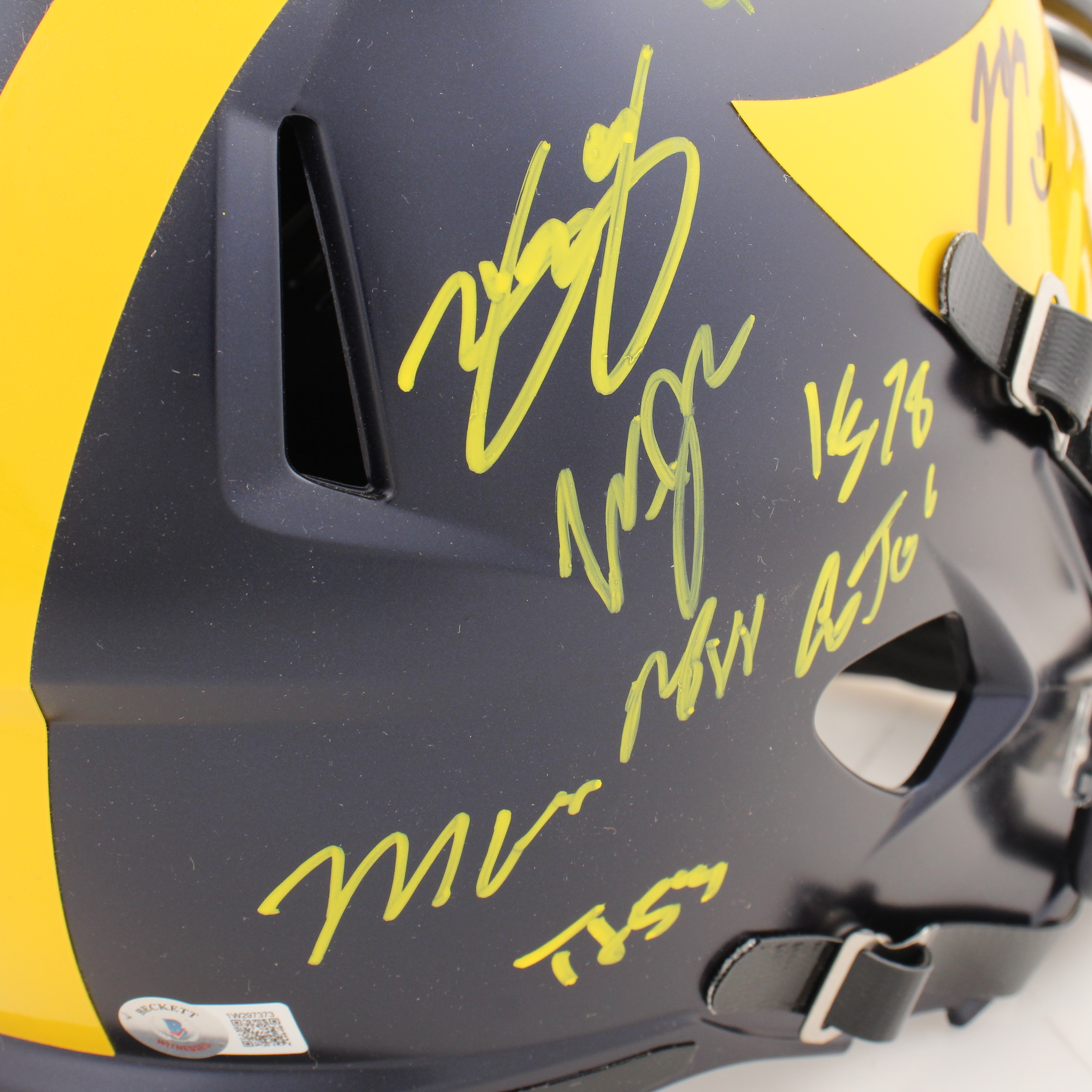 Michigan Wolverines Full-Size Speed Helmet Team-Signed by (18) with J.J. McCarthy, Mike Barrett, Max Bredeson, Junior Colson, Blake Corum (Beckett)