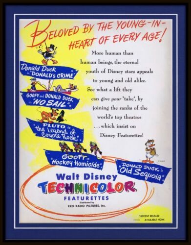 Vintage 1945 Walt Disney Donald Duck Custom Framed Advertisement Display