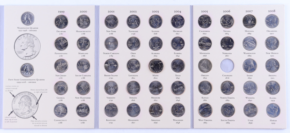 1999 -2008 Fifty State Commemorative Quarter Collection contains (52) coins.