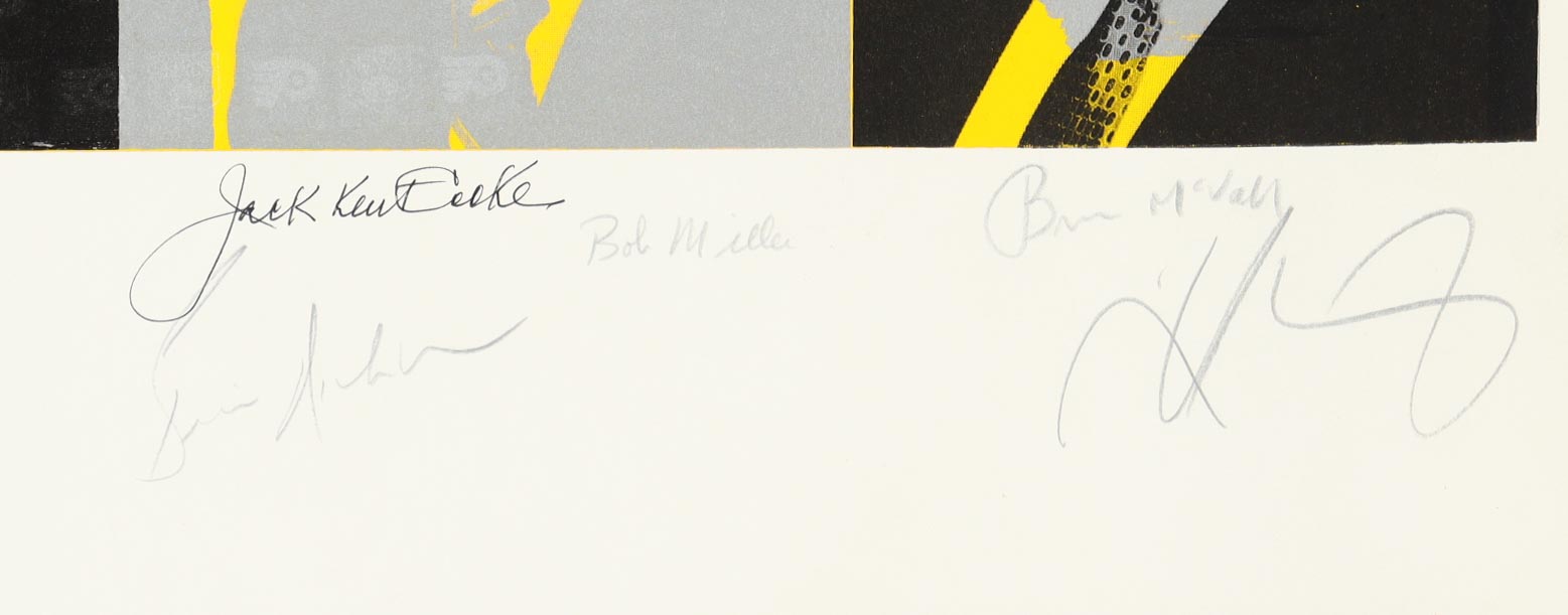 Serigraph measures 38" x 50" in size and has been hand-signed by (12) Los Angeles Kings legends! Signers include Wayne Gretzky, Marcel Dionne, Luc Robitaille, Rogie Vachon, Jack Kent Cooke, Dave Taylor, Butch Goring, Bernie Nicholls and (4) others!
