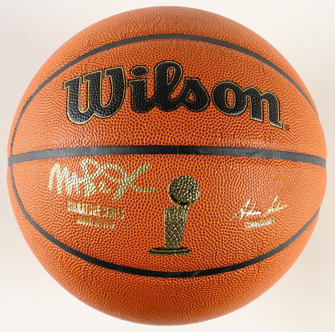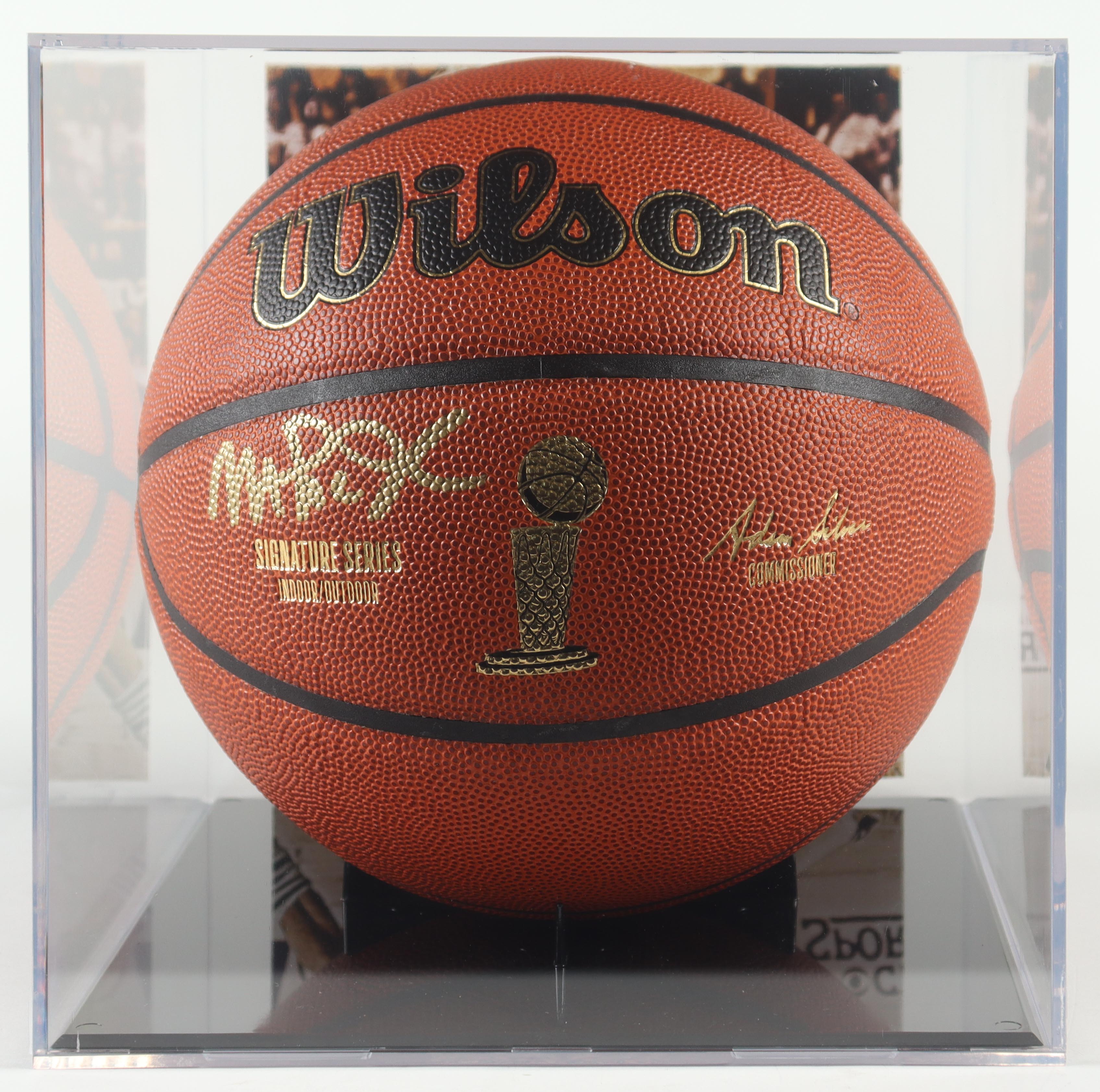 Wilson Signature Series Indoor/Outdoor NBA Finals Trophy Special Edition basketball. Hand-signed by Magic Johnson (Los Angeles Lakers, HOF). The display case is included as shown.