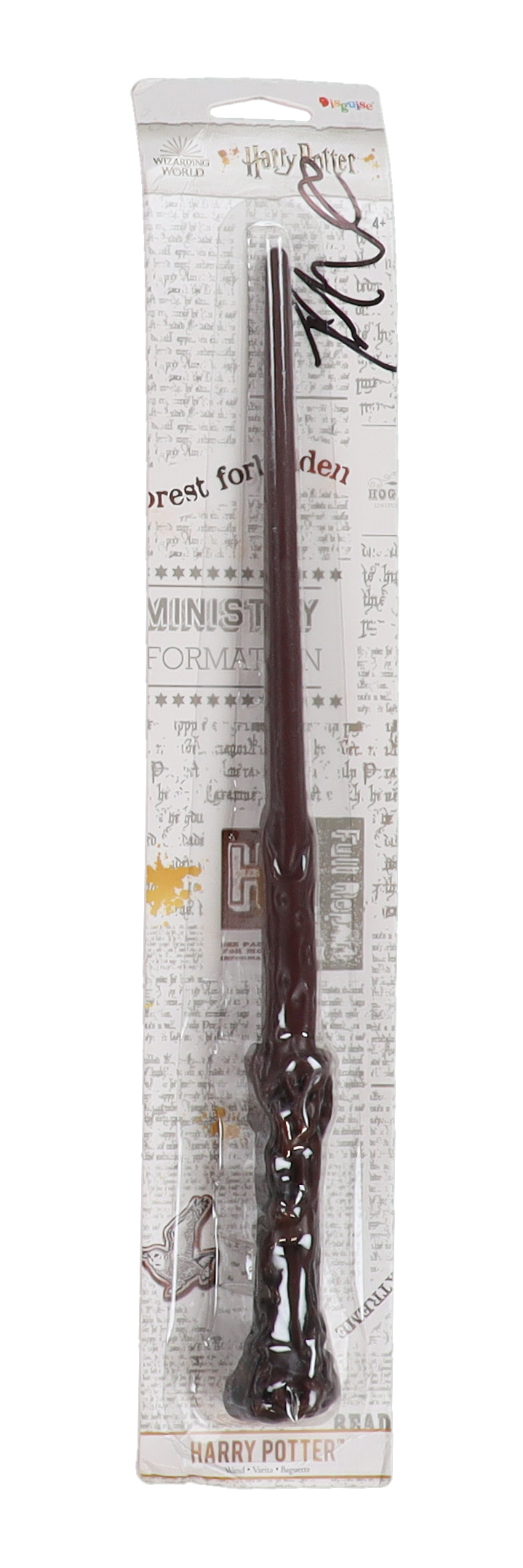 Toy wand packaging measures approximately 3" x 16.5" in size and has been hand-signed by Daniel Radcliffe. Please note, the packaging is creased.