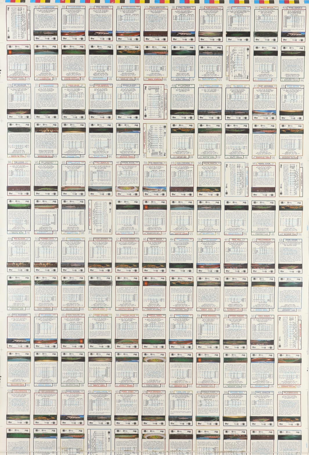 Card sheet measures approximately 28.5" x 43" in size. Features an uncut sheet of (132) cards. Please note, the card sheet is unsigned and there is slight creasing as well as corner and border wear. Please see photos for details regarding the condition of the card sheet.