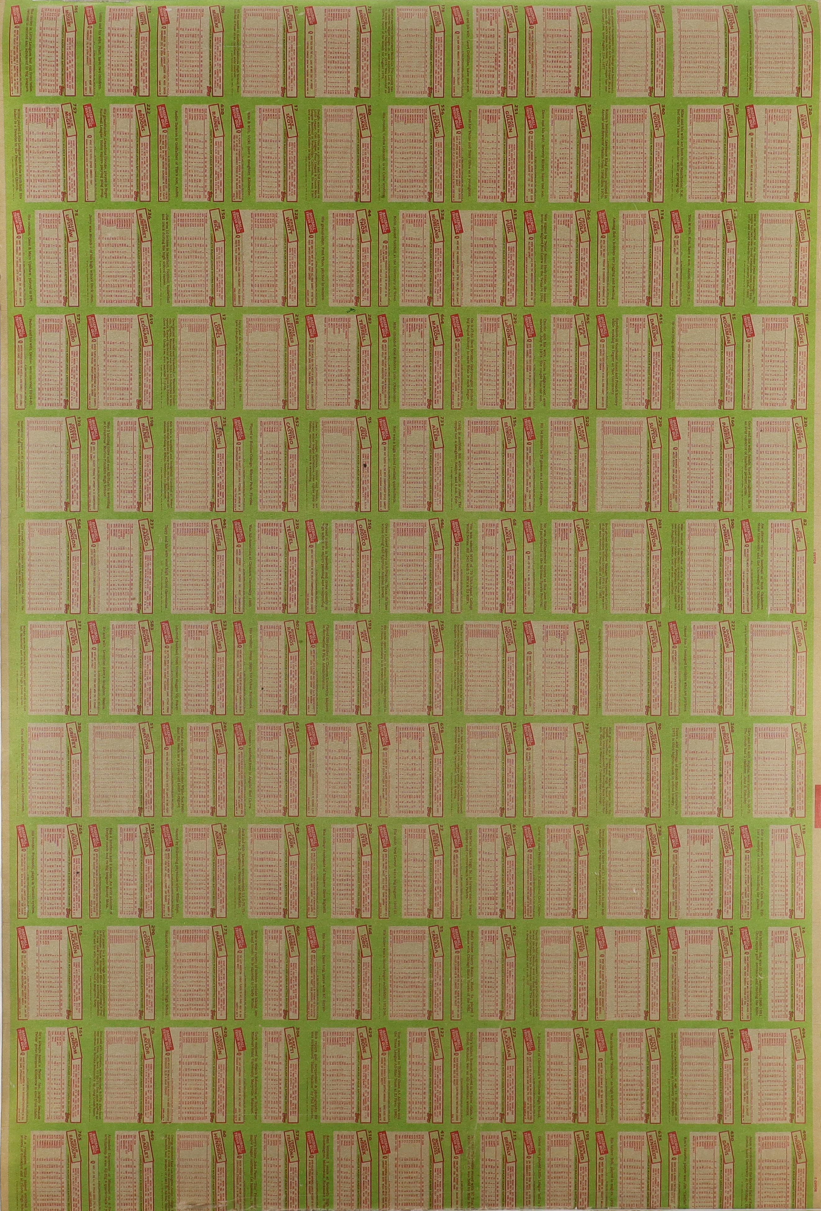 1985 Topps Baseball Uncut Trading Card Sheet of (132) Cards