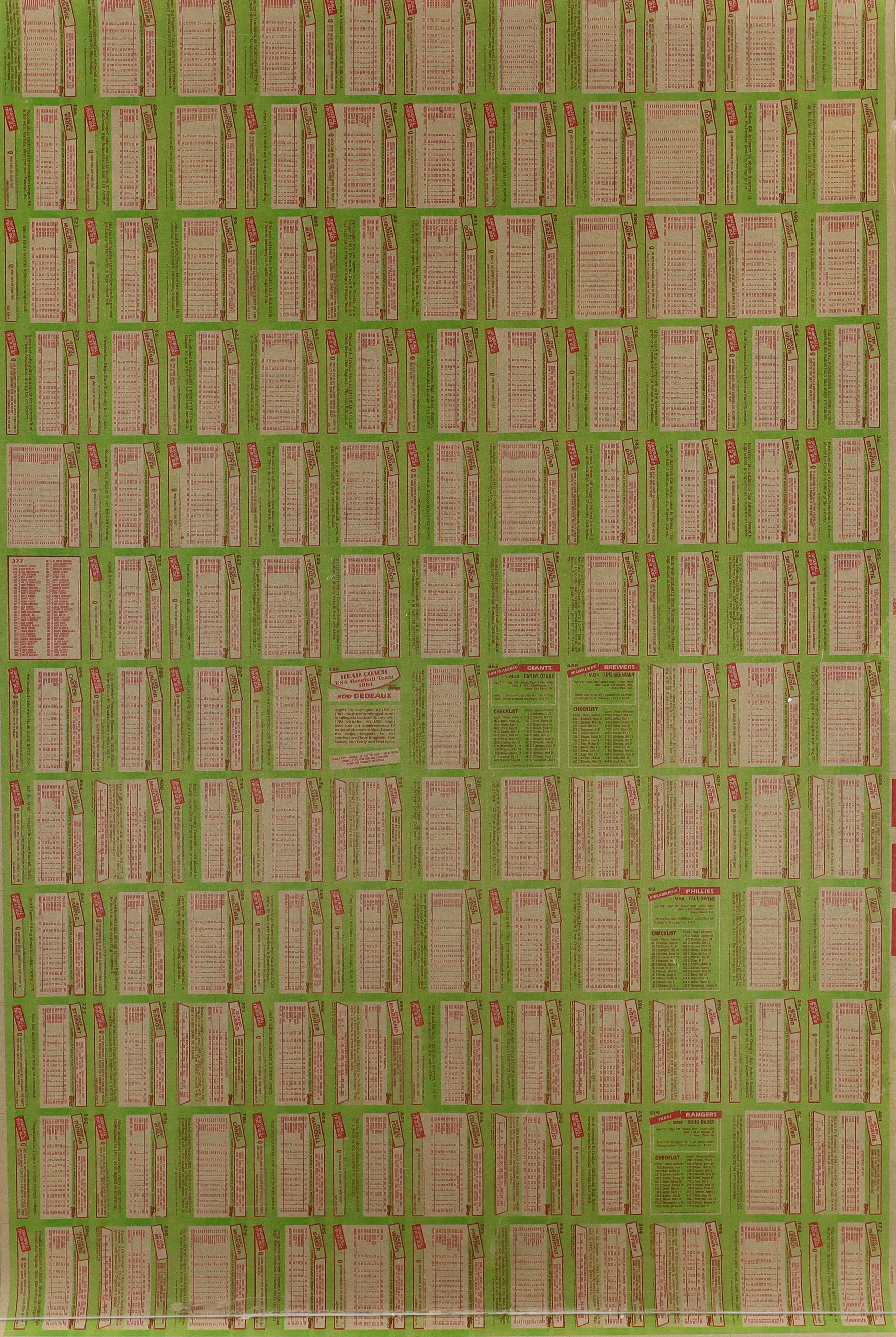 Card sheet measures approximately 28.5" x 43" in size. Features an uncut sheet of (132) cards. Please note, the card sheet is unsigned and there is creasing and scuffing as well as corner and border wear. Please see photos for details regarding the condition of the card sheet.
