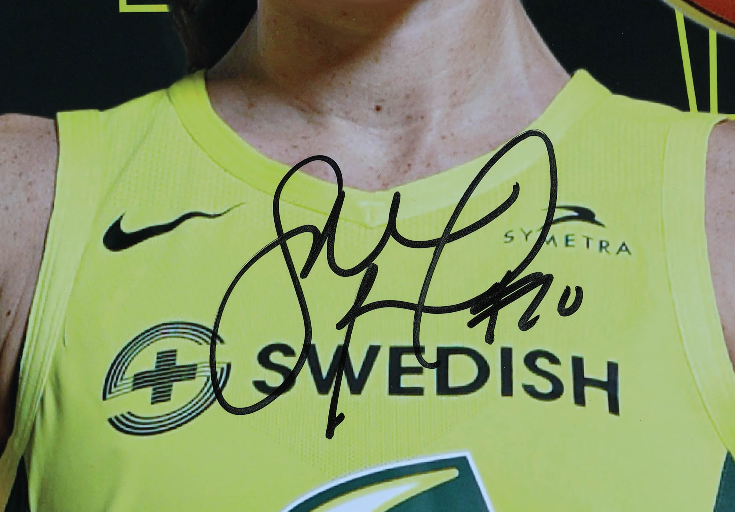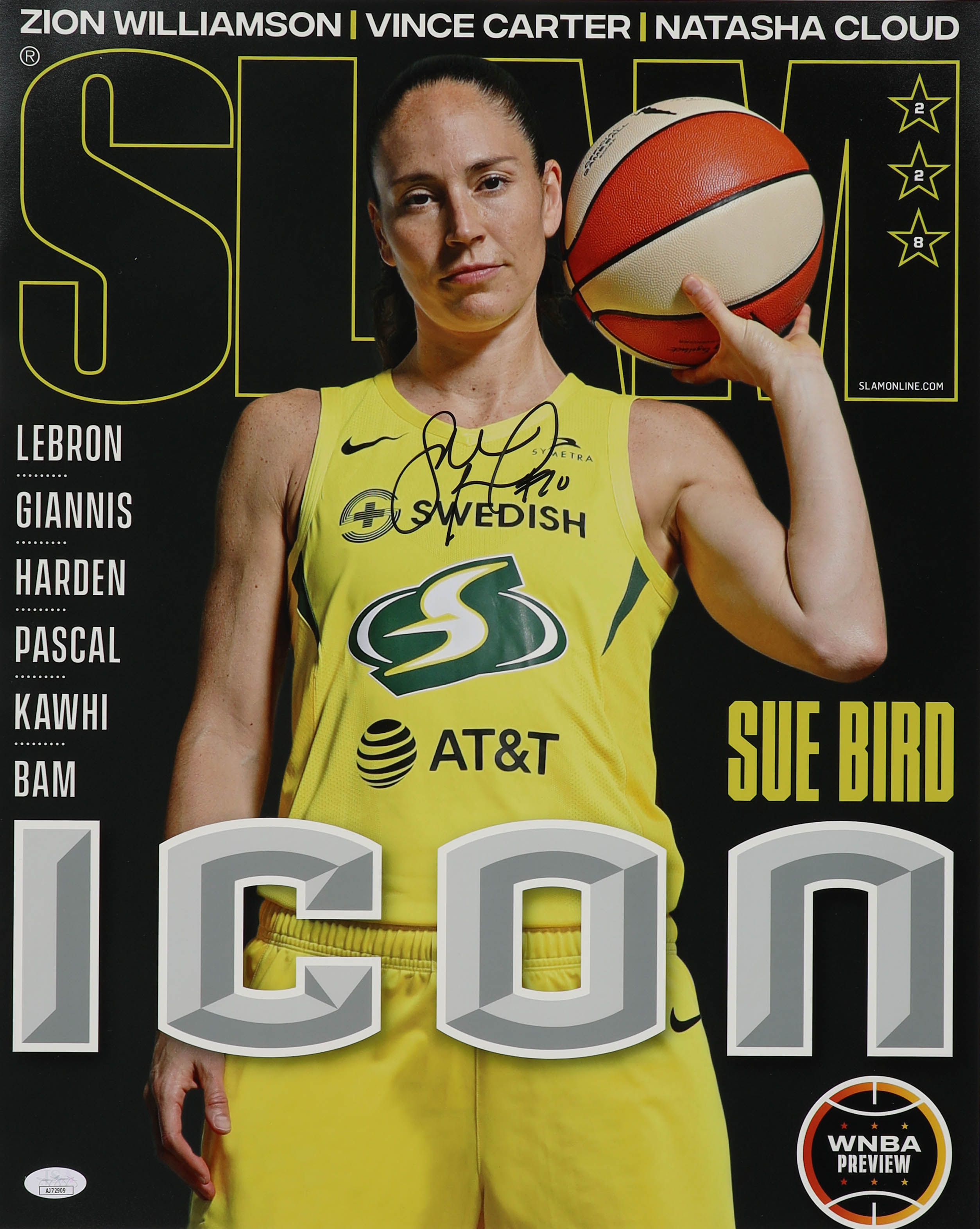 Photo measures 16" x 20" in size. Hand-signed by Sue Bird (Seattle Storm).
