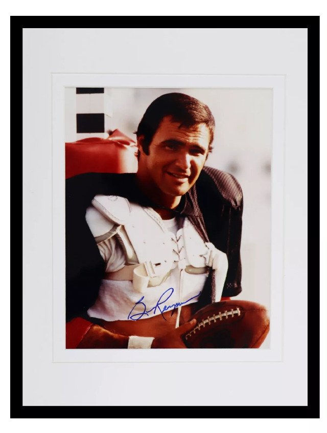 Custom frame measures 11” x 14” in size and features a photo that has been hand-signed by Burt Reynolds (D. 2018).