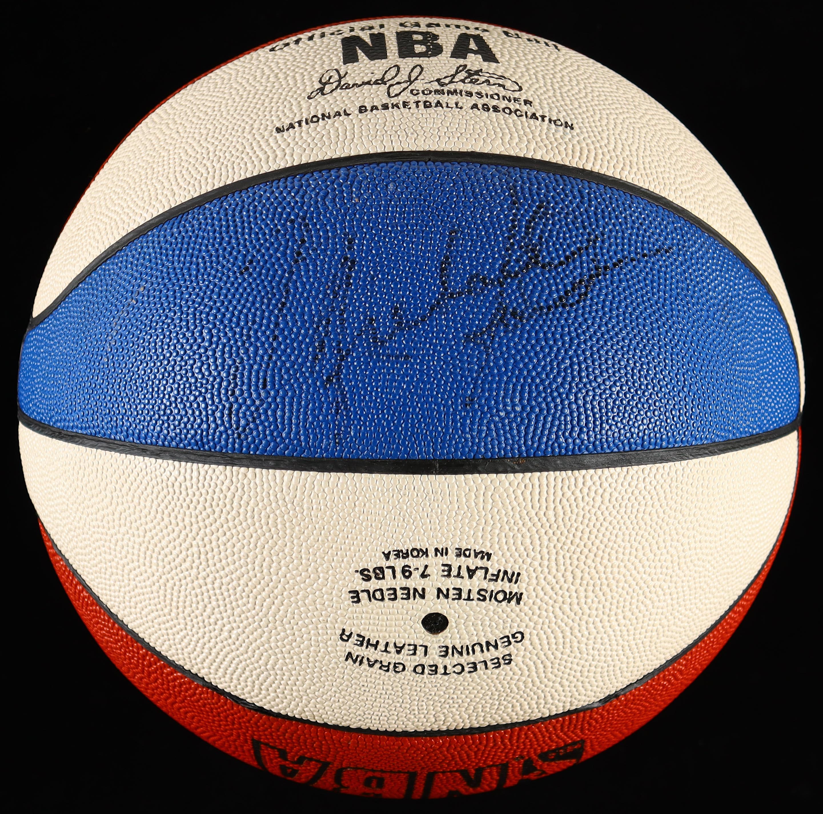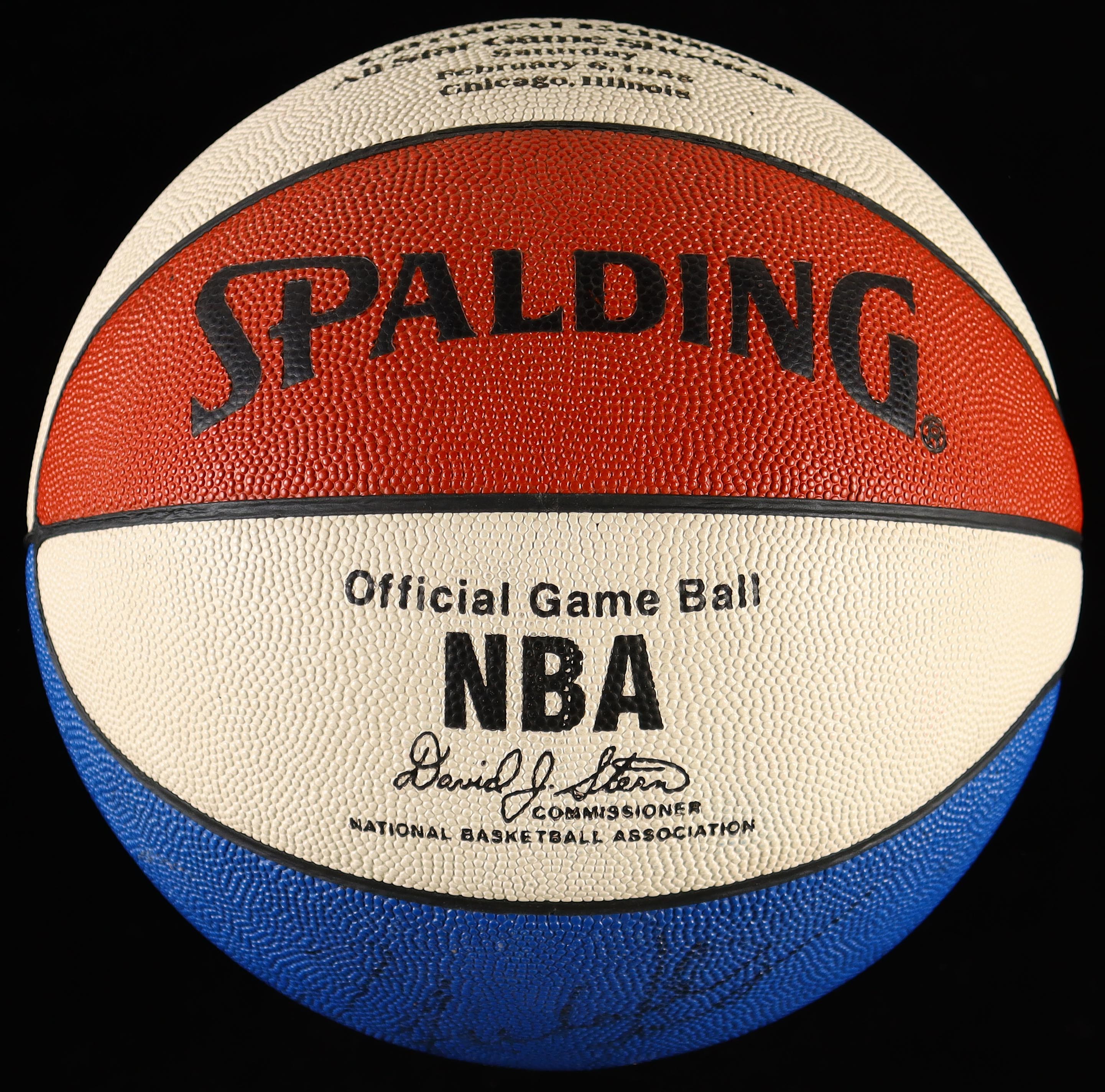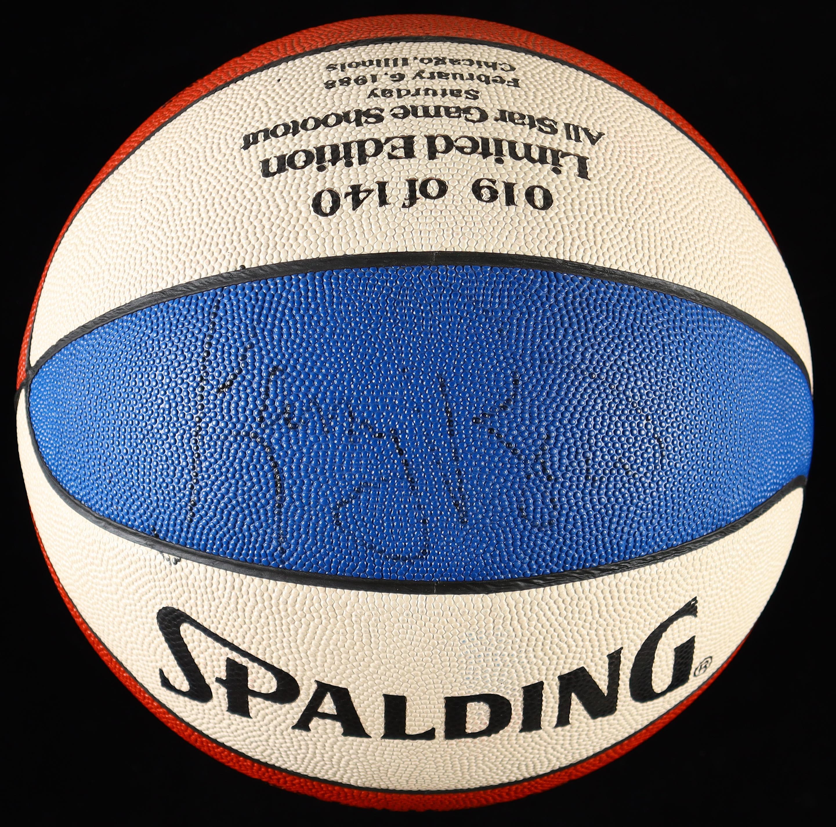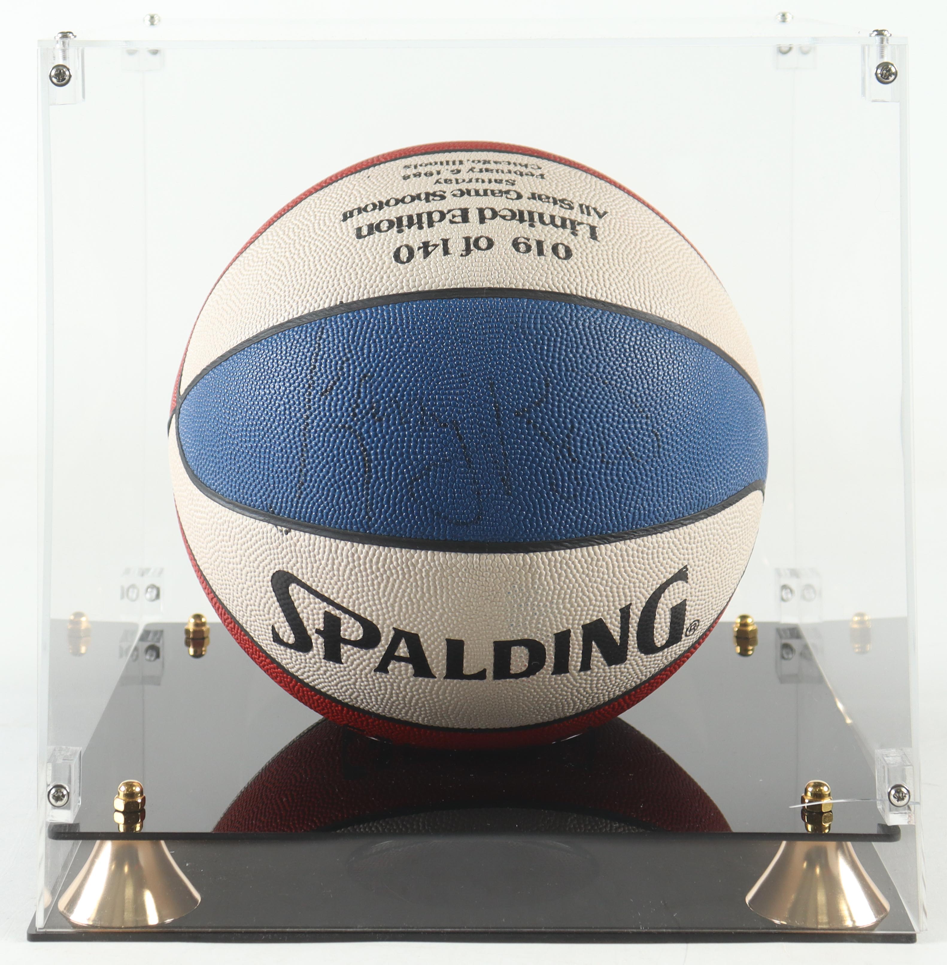 Spalding NBA Game Ball Series basketball. Hand-signed by Michael Jordan (HOF) and Larry Bird (Team USA, HOF). The ball is limited edition and numbered #19/140. Includes display case as shown.