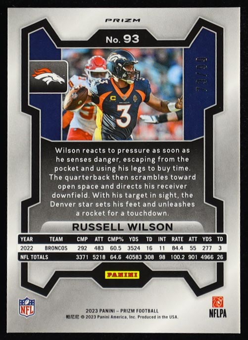 Russell Wilson 2023 Panini Prizm Prizms Blue Ice #93 #73/99