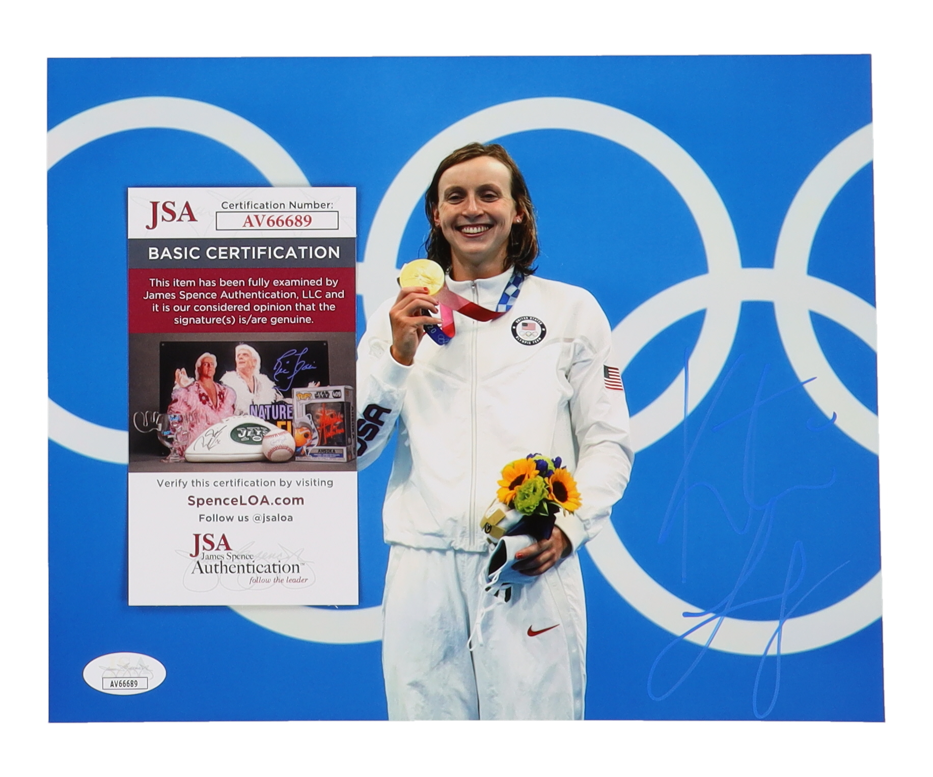 Photo measures 8" x 10" in size. Hand-signed by Katie Ledecky.