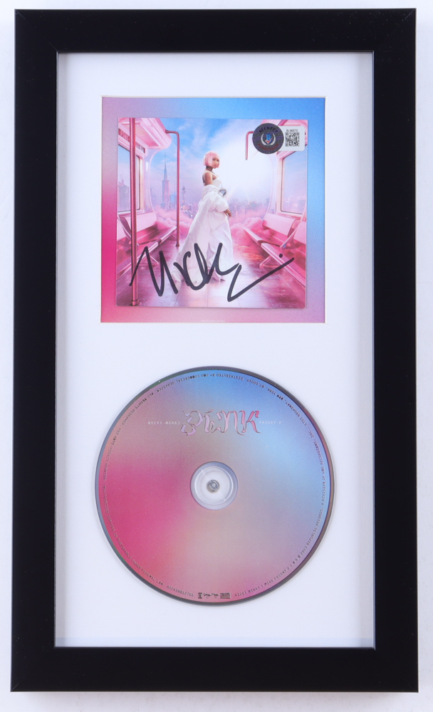 Custom frame measures approximately 8" x 13.5" in size. Features a CD album insert that has been hand-signed by Nicki Minaj. The display includes the CD as well.