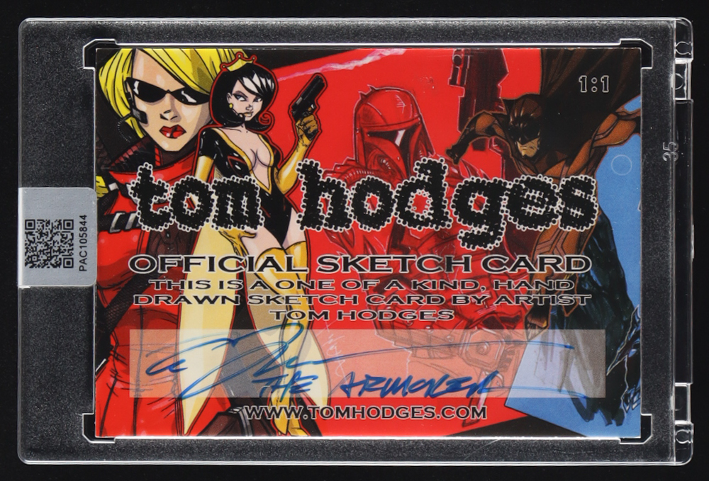 This original sketch card includes original art by renowned comic book artist, Tom Hodges. Also includes a character name inscription on the back by the artist.