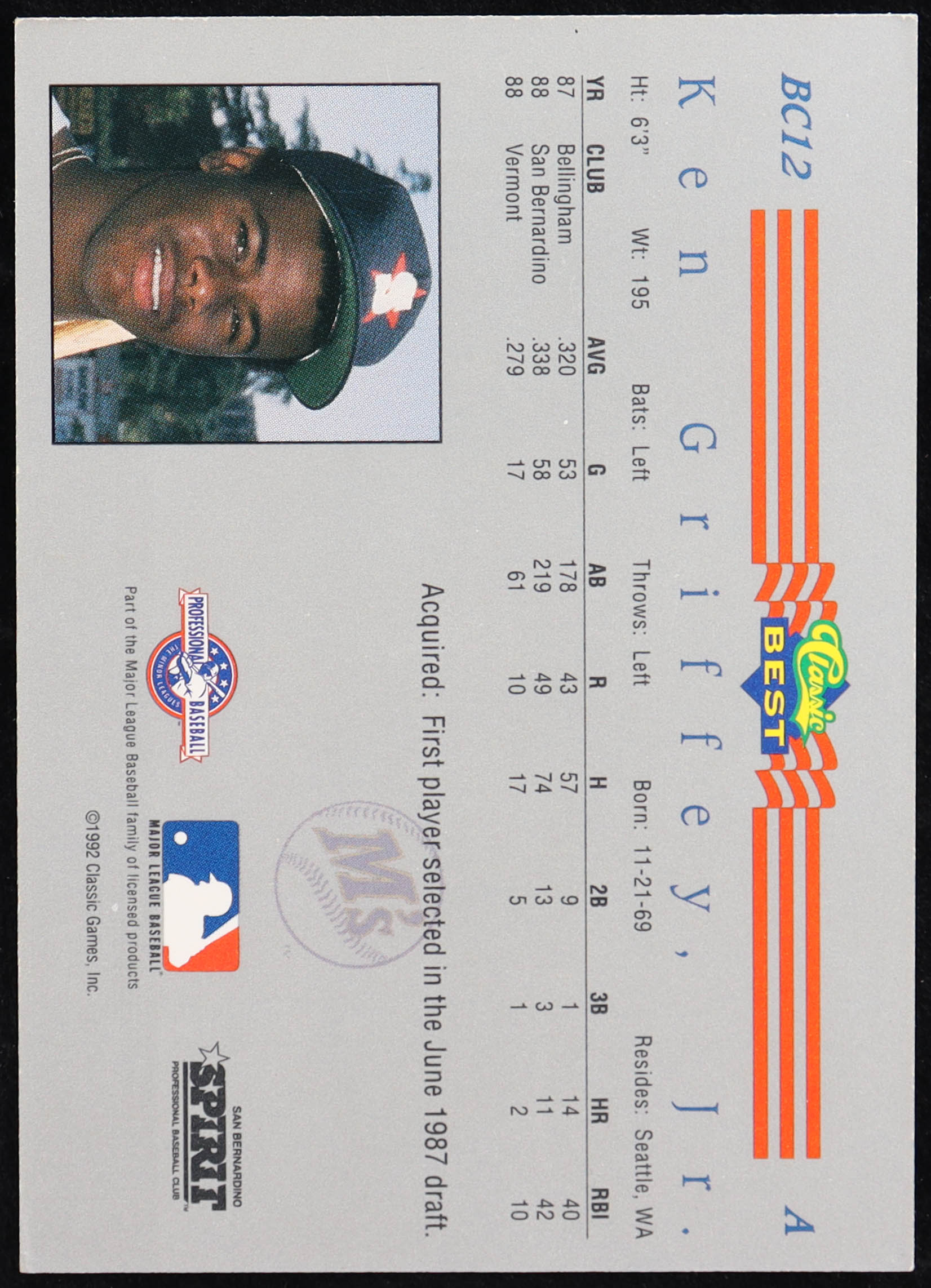 Ken Griffey Jr. 1992 Classic/Best Red Bonus #BC12
