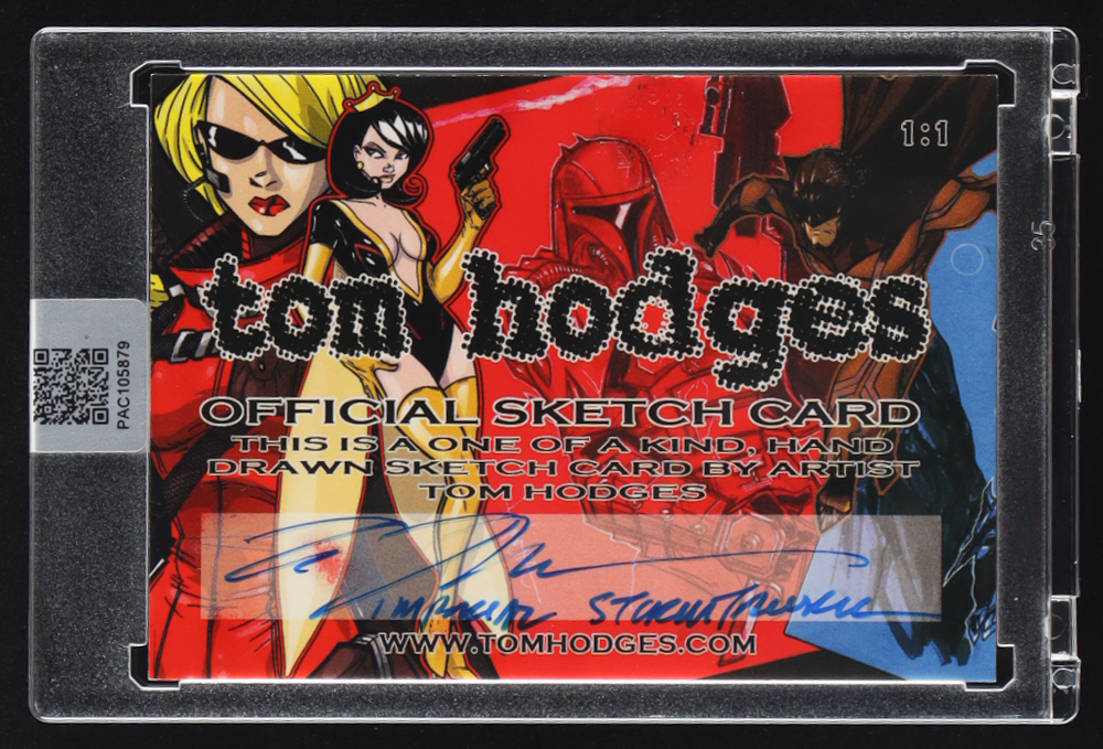 This original sketch card includes original art by renowned comic book artist, Tom Hodges. Also includes a character name inscription on the back by the artist.
