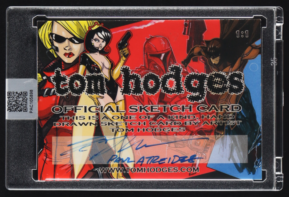This original sketch card includes original art by renowned comic book artist, Tom Hodges. Also includes a character name inscription on the back by the artist.