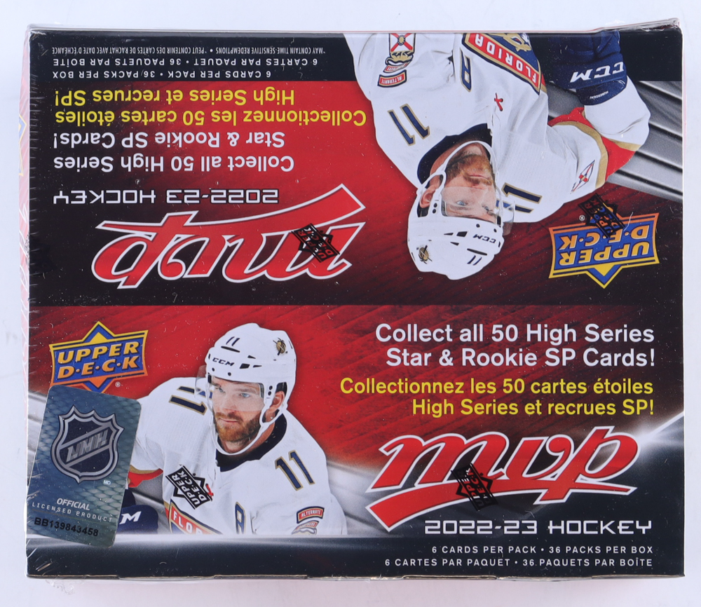 Get ready to add some new and exciting items to your sports trading cards collection with the 2022-23 MVP Hockey Retail Box by Upper Deck. This factory sealed box contains 36 packs of sports trading cards that feature players from the upcoming season. The set includes cards from various teams and divisions, making it a must-have for any sports fan.