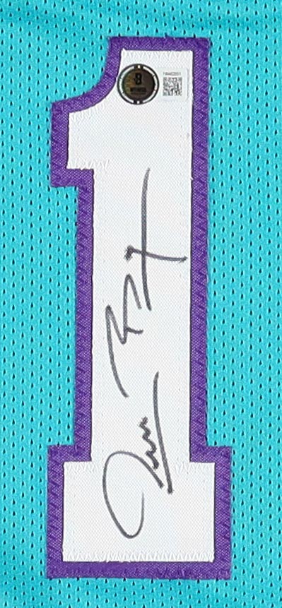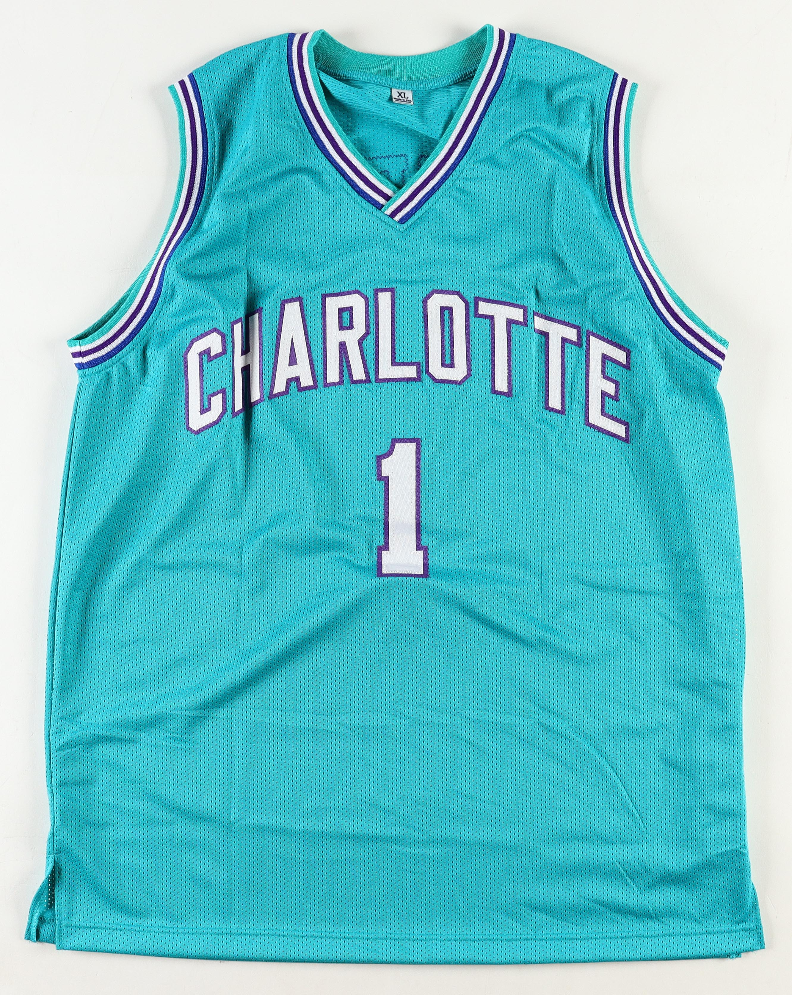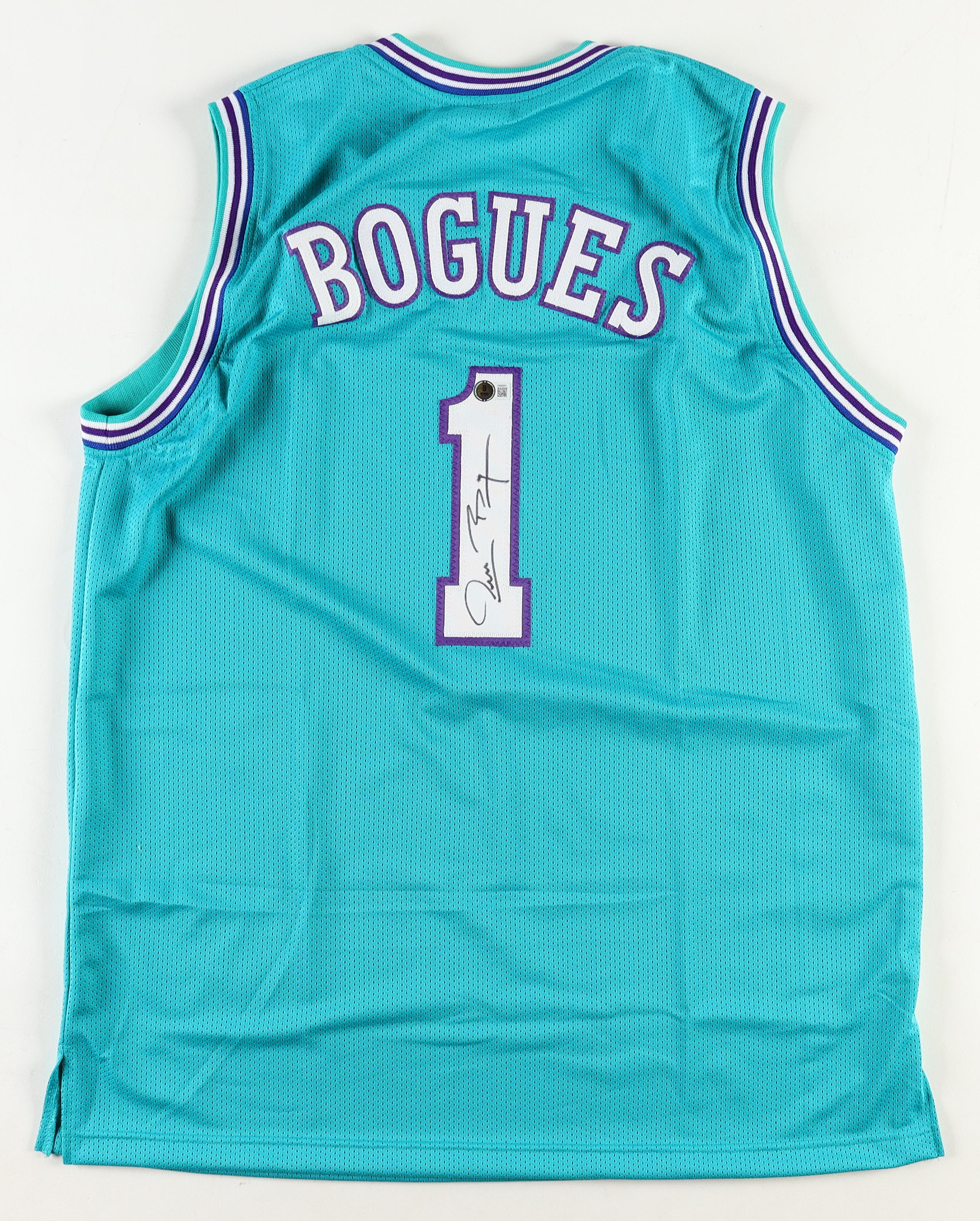Custom jersey. Everything is sewn on, size XL. Hand-signed by Muggsy Bogues.