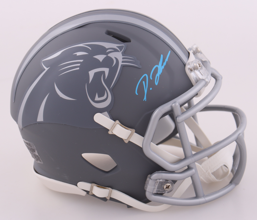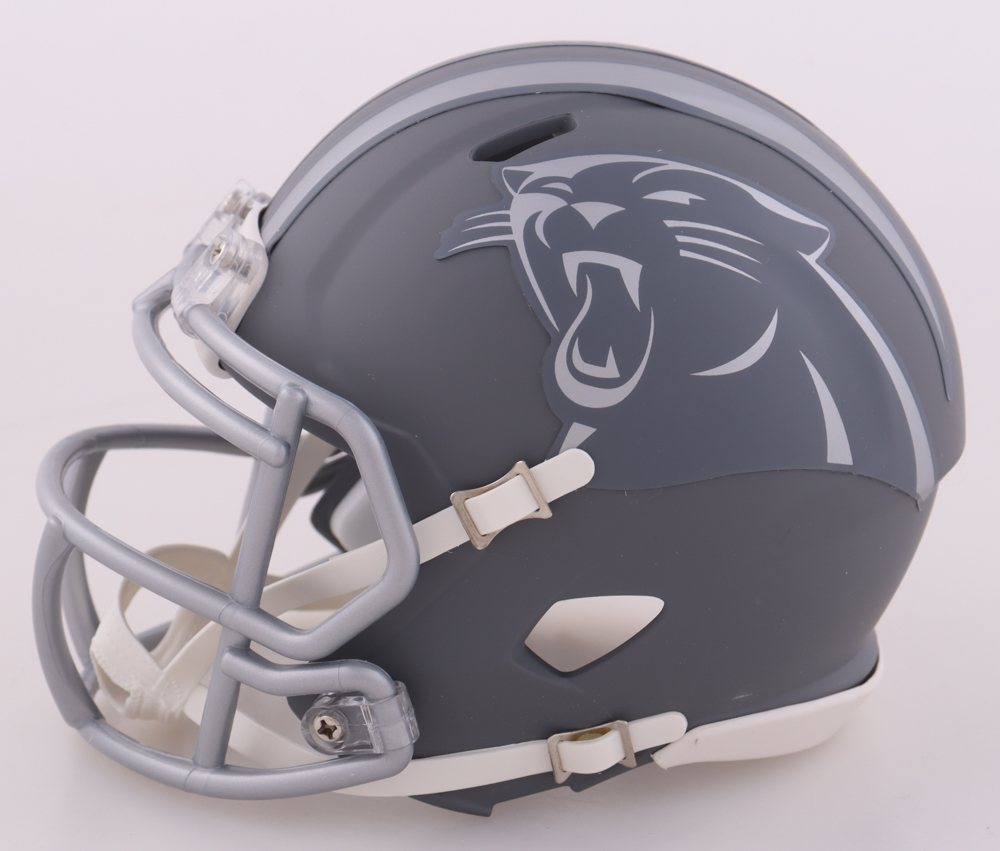 Riddell Carolina Panthers Slate Alternate Speed mini helmet. Hand-signed by Diontae Johnson.