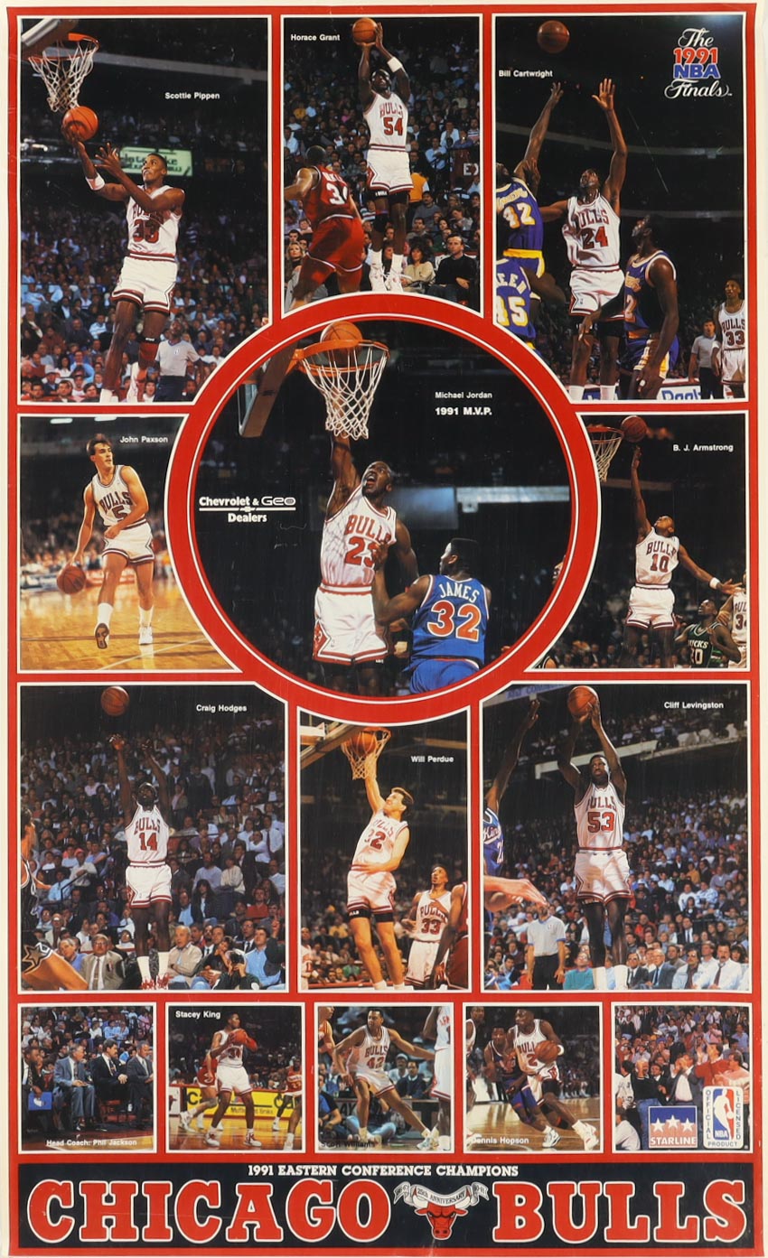 Chicago Bulls 25th Anniversary 1991 Eastern Conference Champions 22.5x37.5 Poster with Michael Jordan, Scottie Pippen, Steve Kerr, Phil Jackson
