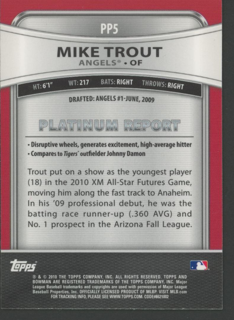 Mike Trout 2010 Bowman Platinum Prospects #PP5 RC