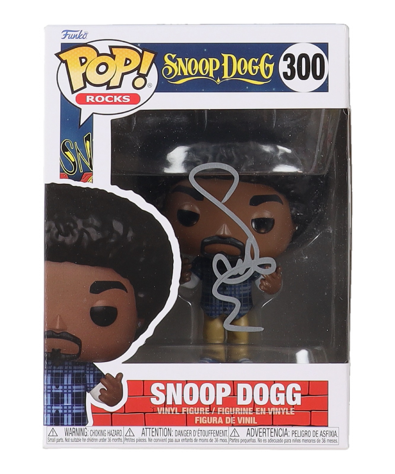 Funko Pop! vinyl figure measures approximately 4" tall and the packaging has been hand-signed by Snoop Dogg.