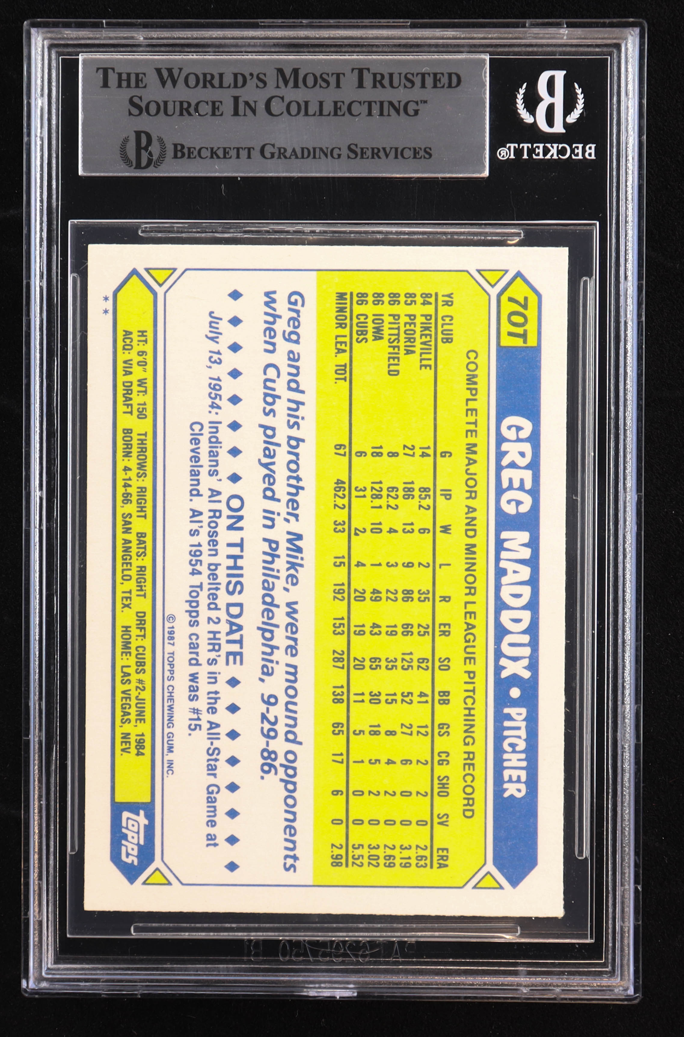 Greg Maddux Signed 1987 Topps Traded #70T XRC (BGS)