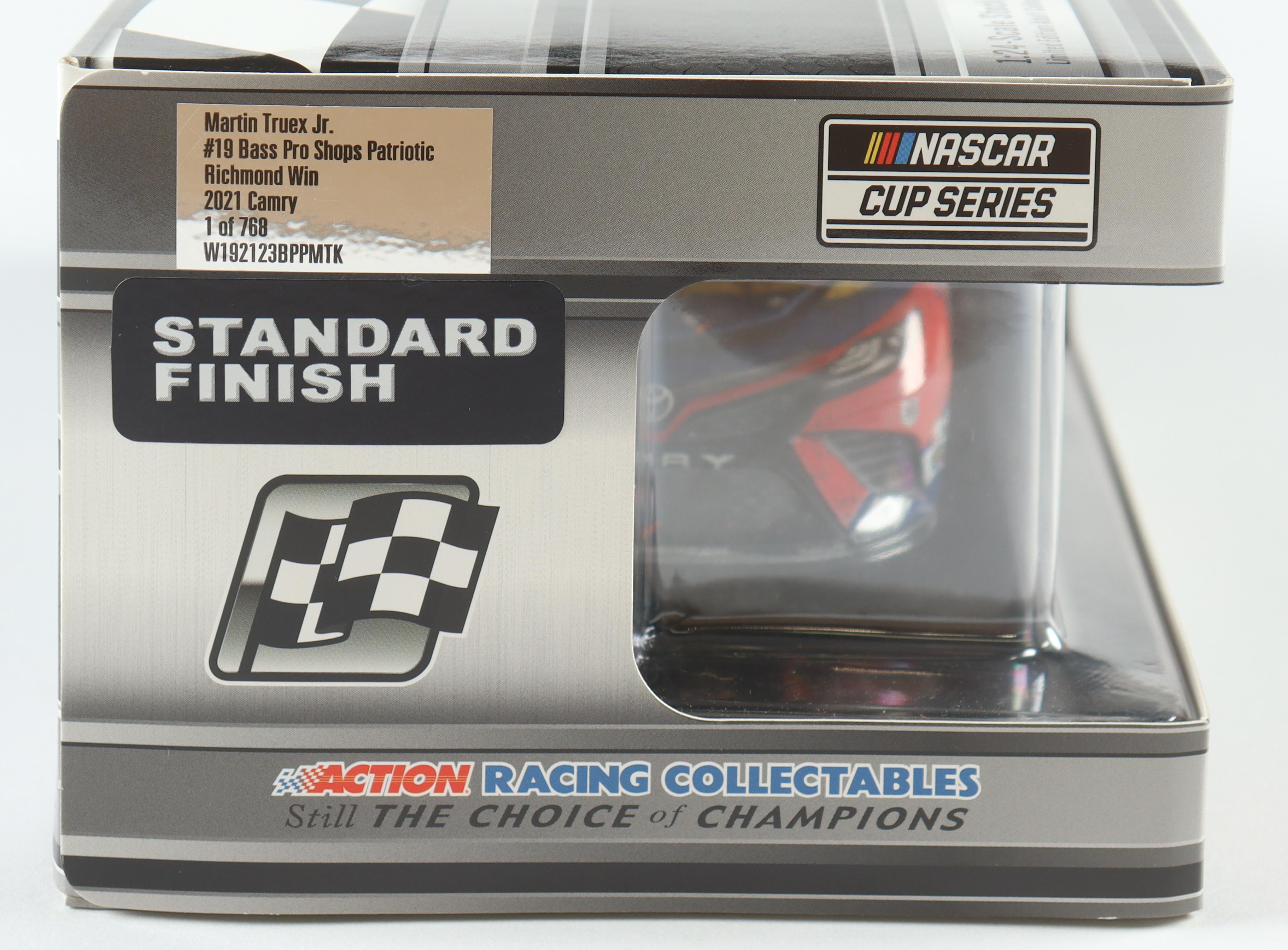 The Bass Pro Shops #19 Richmond Raced Win 2021 Toyota Camry is a limited edition to just 768 produced and includes the original packaging.