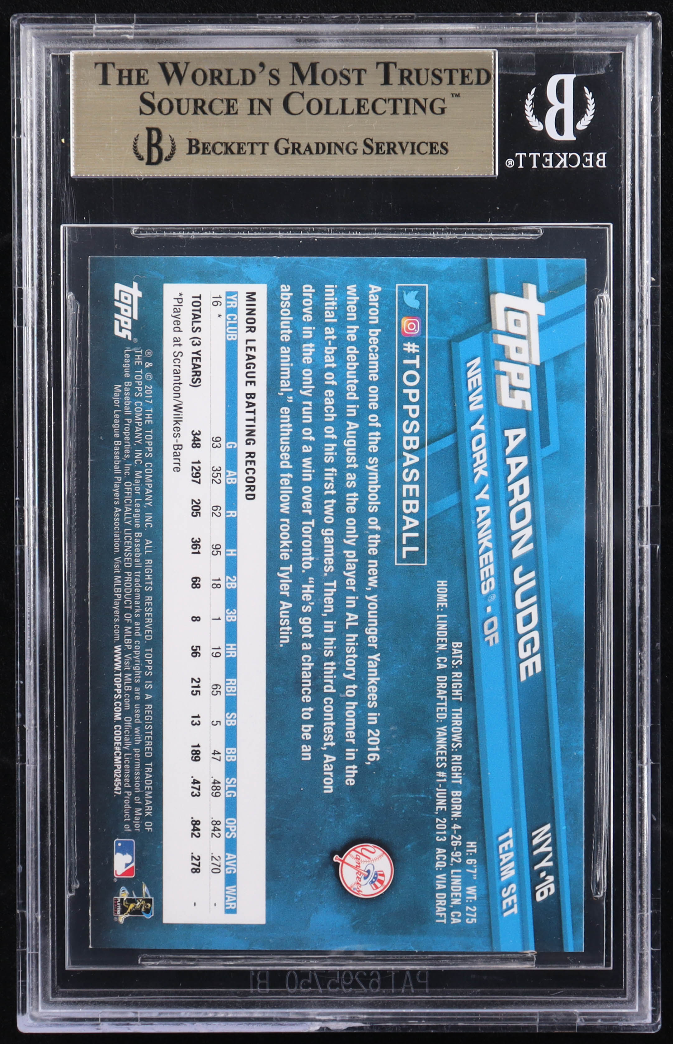 Aaron Judge 2017 Yankees Topps #NYY16 RC (BGS 9.5)