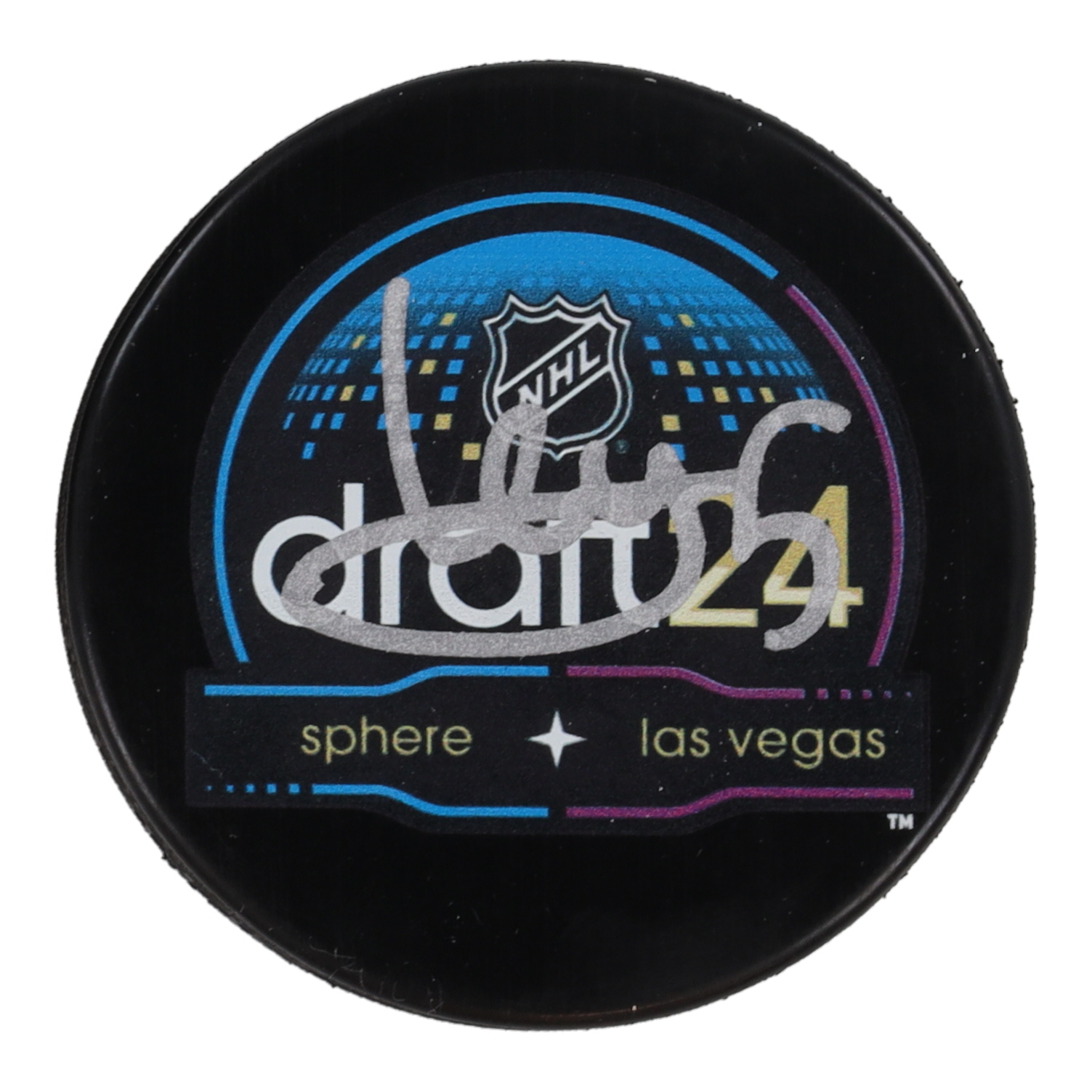 2024 NHL Draft puck. Hand-signed by Artyom Levshunov (Chicago Blackhawks).