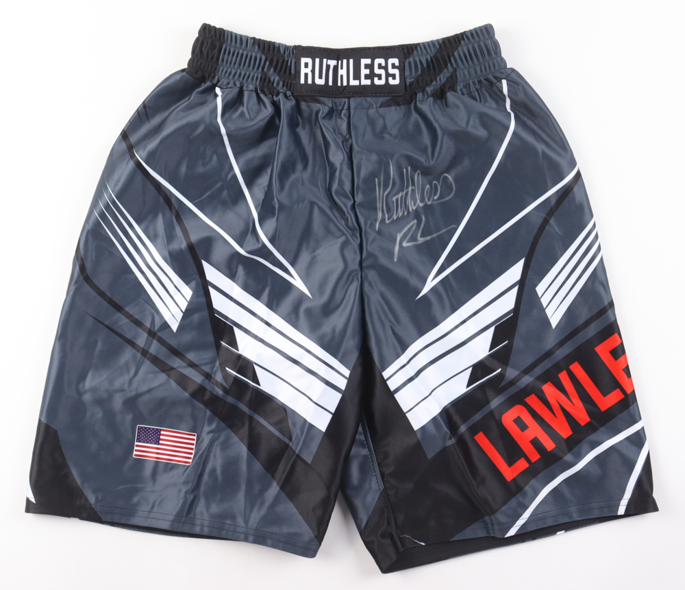 Custom MMA shorts, everything is printed on. Hand-signed and inscribed by Robbie Lawler.