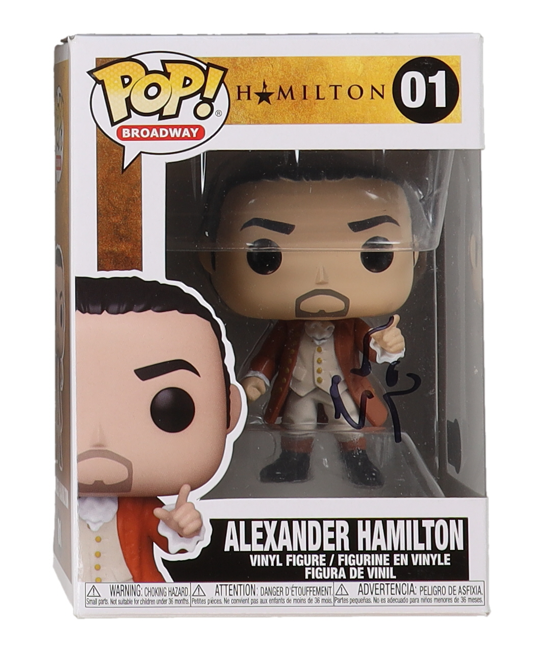 Funko Pop! vinyl figure measures approximately 4" tall and has been hand-signed on the packaging by Lin-Manuel Miranda.