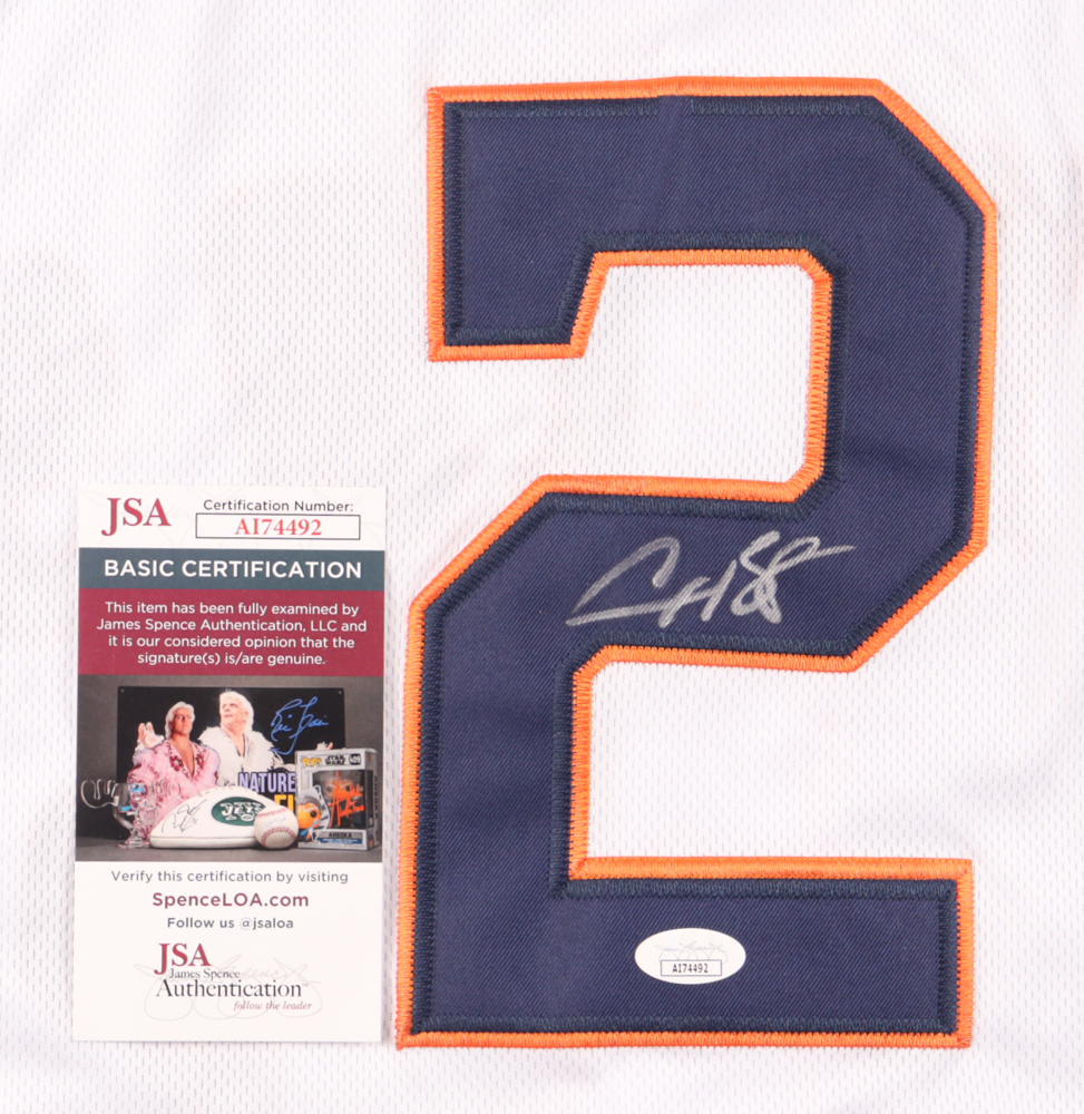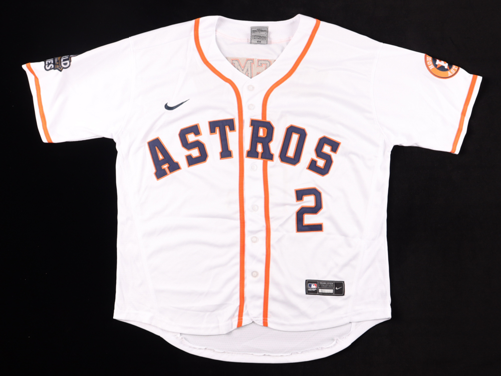 Nike jersey. Everything is sewn on, size 44. Hand-signed by Alex Bregman.