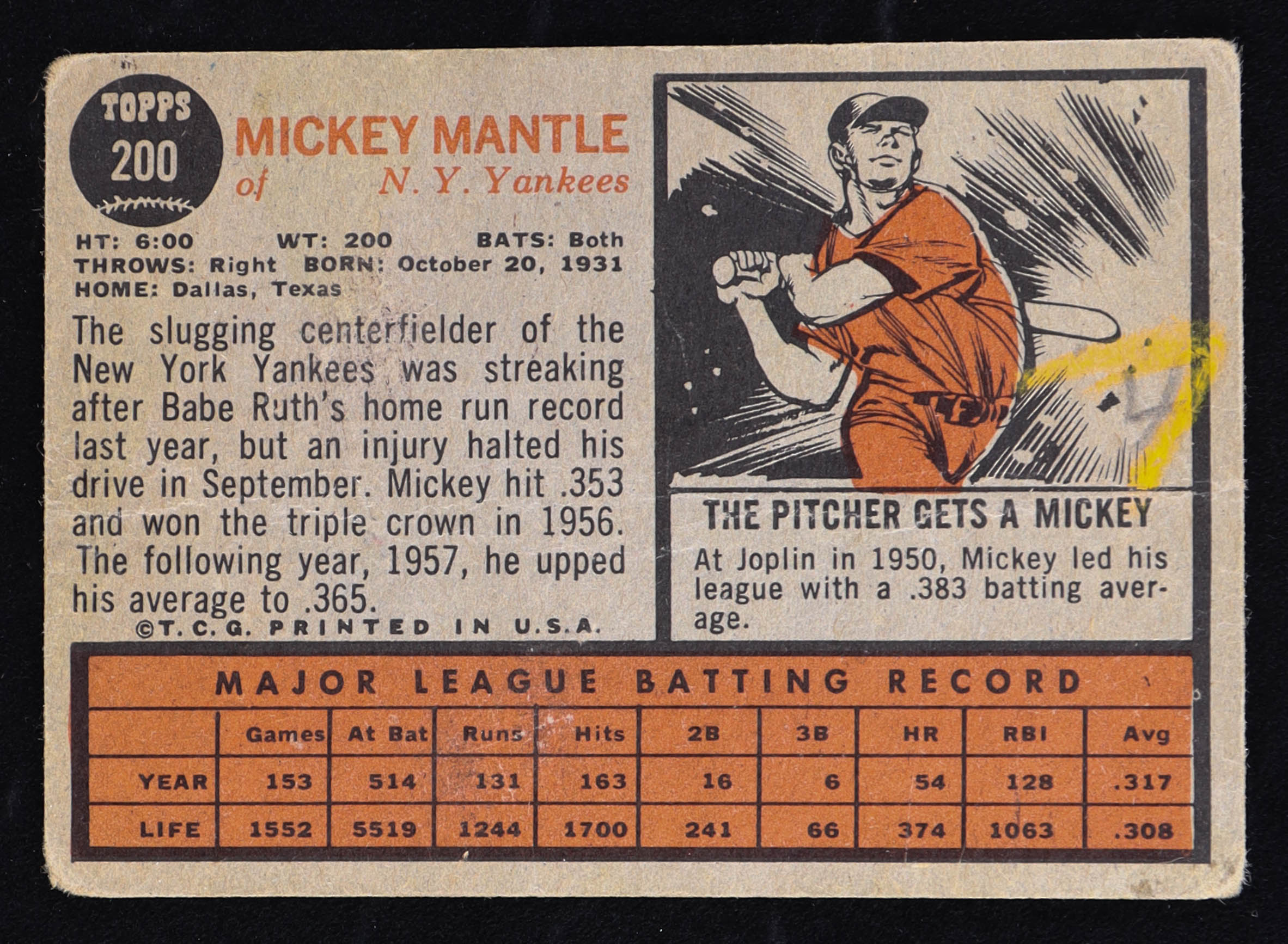 Mickey Mantle 1962 Topps #200