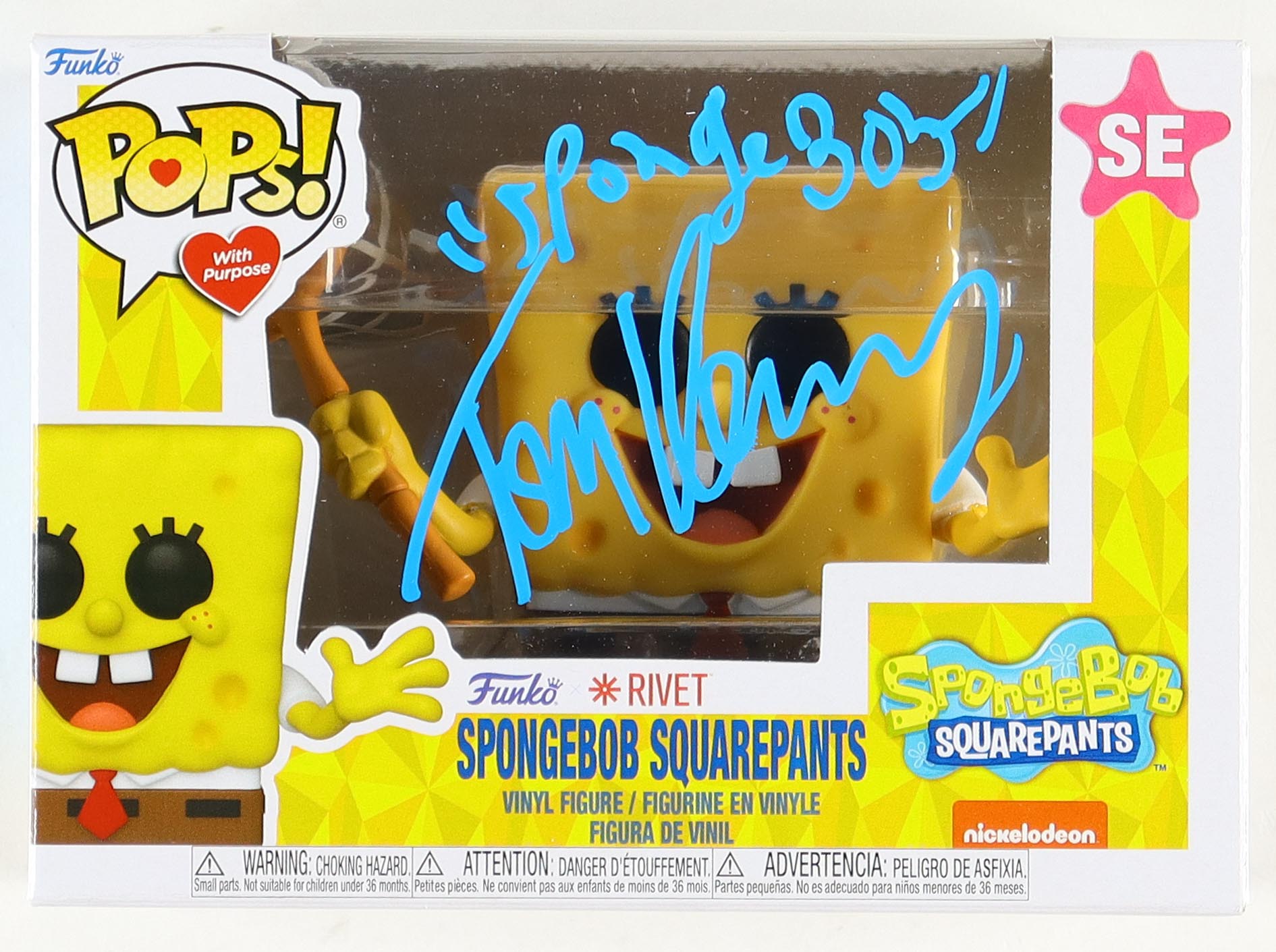 Funko pop! vinyl figure measures approximately 4" tall and has been hand-signed & inscribed on the packaging by Tom Kenny.