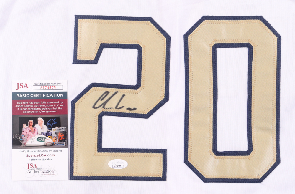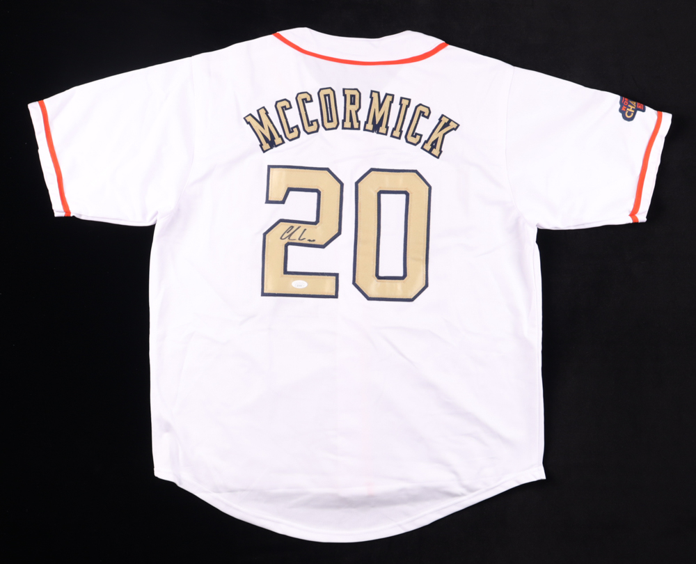 Custom jersey. Everything is sewn on, size XL. Hand-signed by Chas McCormick.