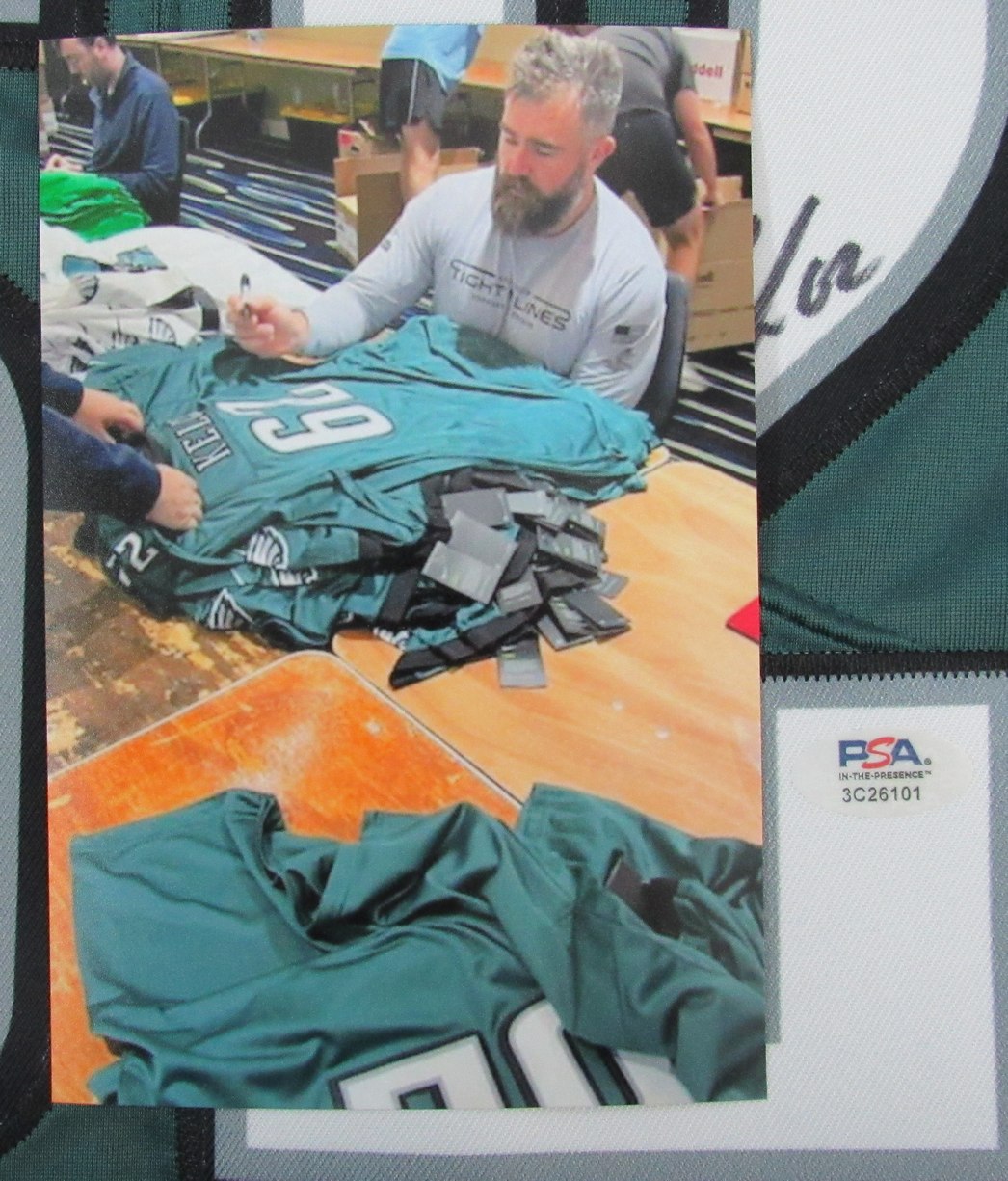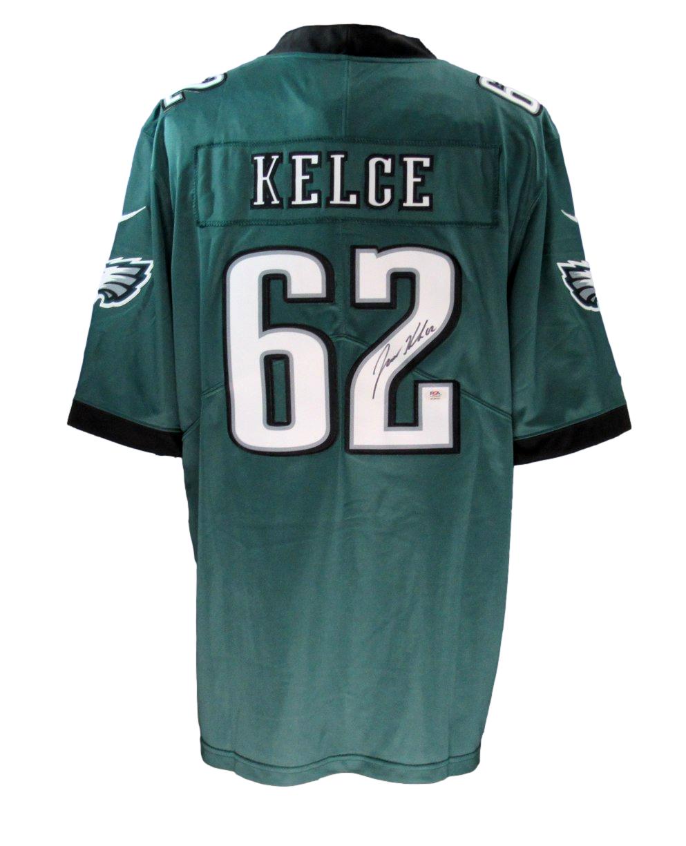 Nike jersey. Everything sewn on, size XL. Hand-signed by Jason Kelce.
