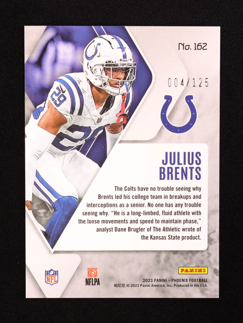 Julius Brents 2023 Panini Phoenix Purple Seismic #162 RC #004/125
