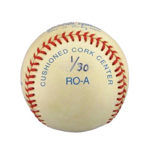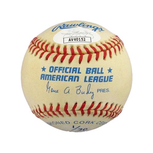 Rawlings Official American League baseball. Hand-signed and inscribed by Bobby Richardson (New York Yankees). Please note, the baseball is naturally toned.