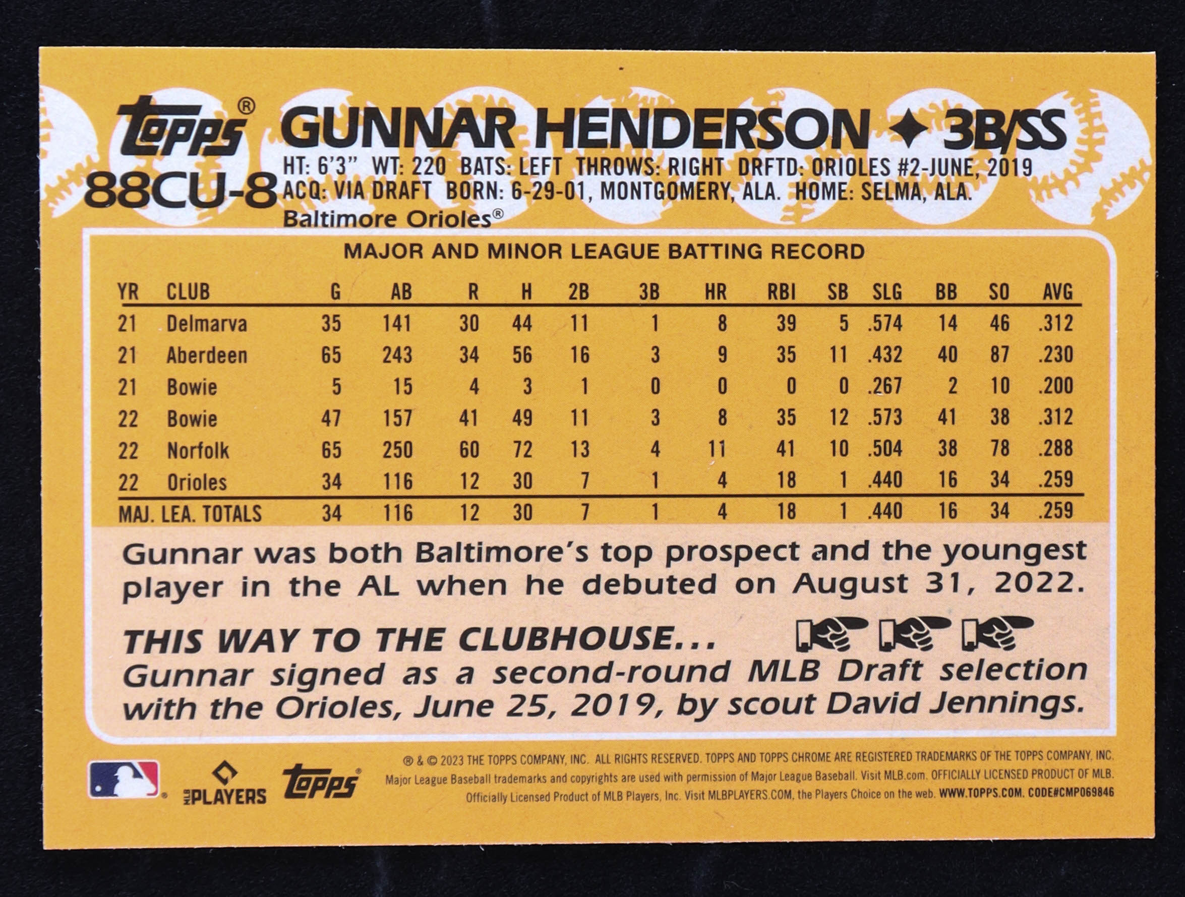 Gunnar Henderson 2023 Topps Chrome Update '88 Topps #88CU8 RC