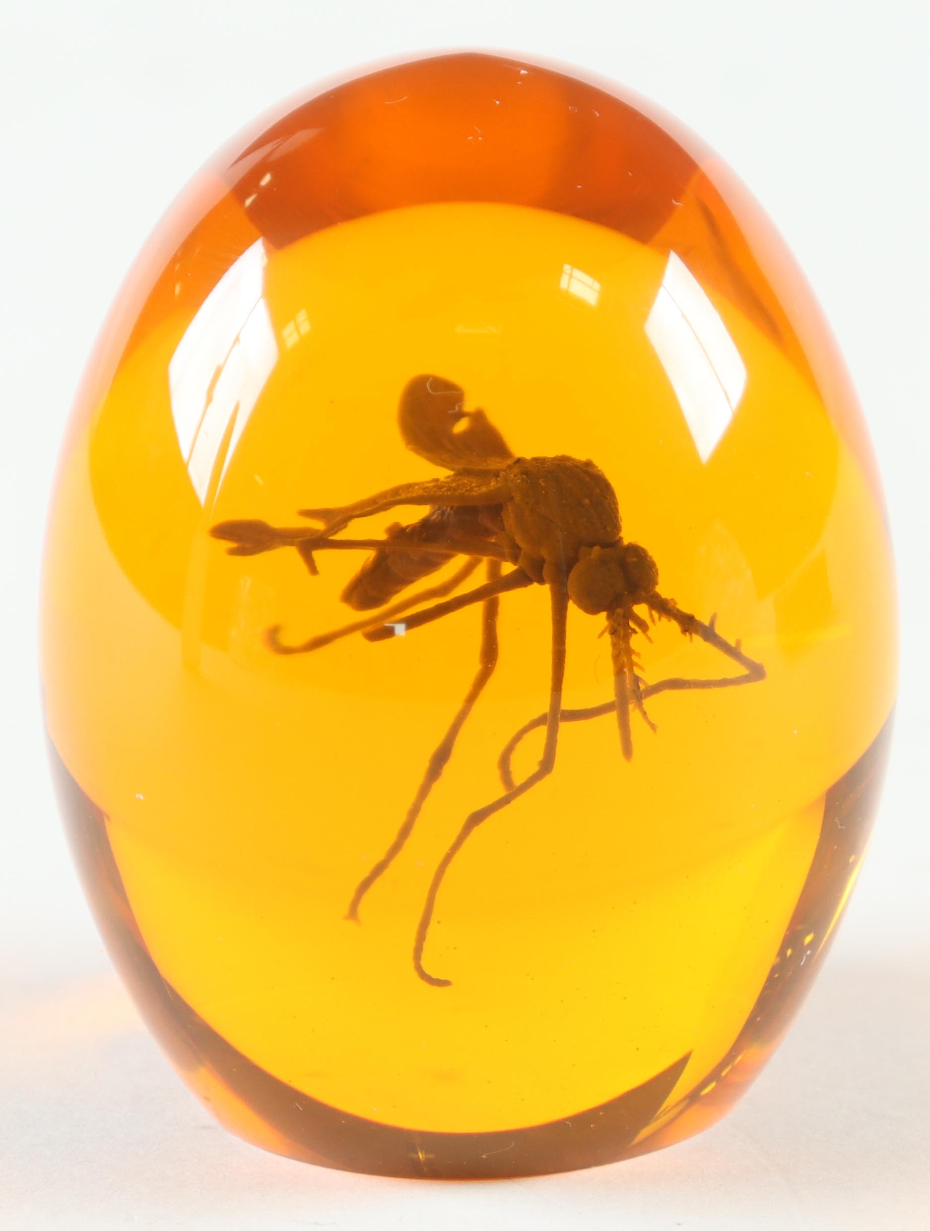 Jurassic Park Replica Prop Mosquito In Amber. Approximately 3" in height. Display case is included as show.