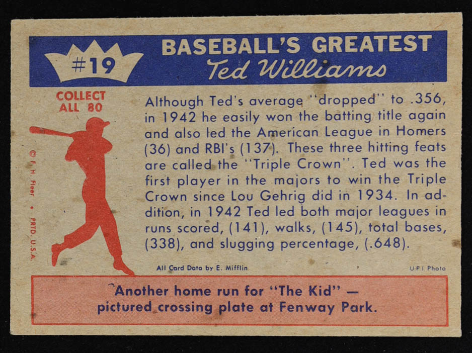 Ted Williams 1959 Fleer #19 / Ted Wins Triple Crown