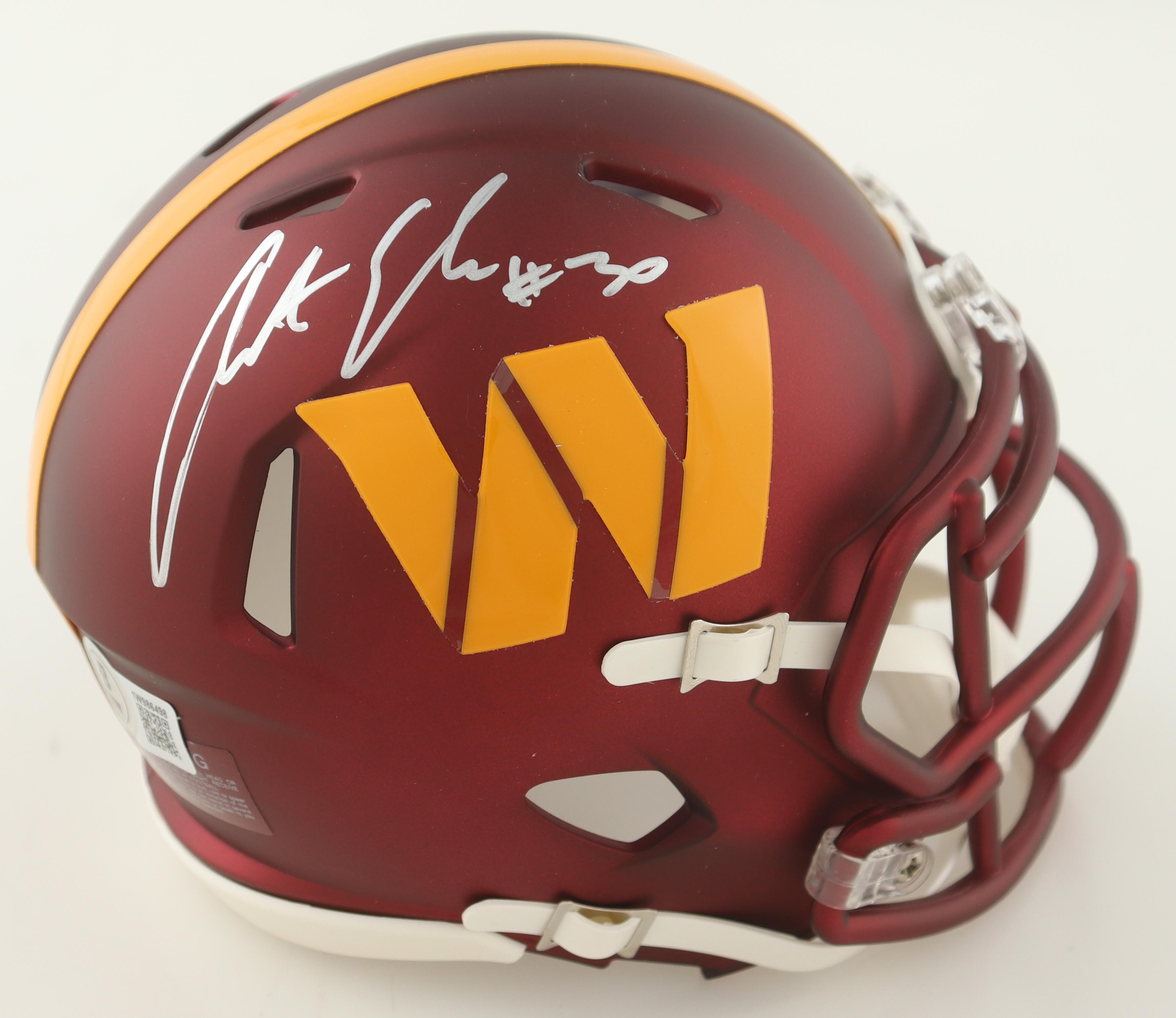 Riddell Washington Commanders Speed mini helmet. Hand-signed by Austin Ekeler.
