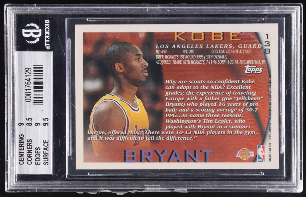 Kobe Bryant 1996-97 Topps #138 RC (BGS 9)