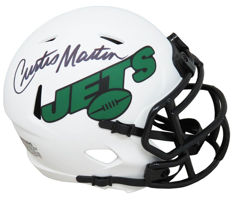 Riddell New York Jets Lunar Eclipse Alternate Speed mini helmet. Hand-signed by Curtis Martin (HOF).