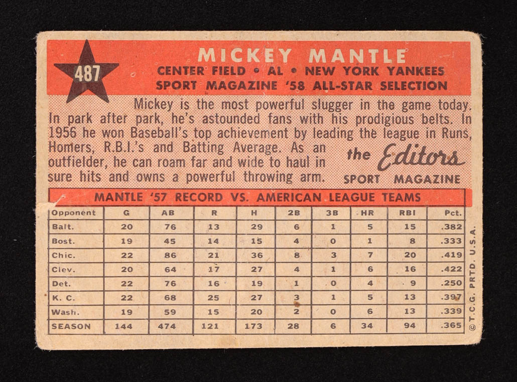 Mickey Mantle 1958 Topps #487 AS TP