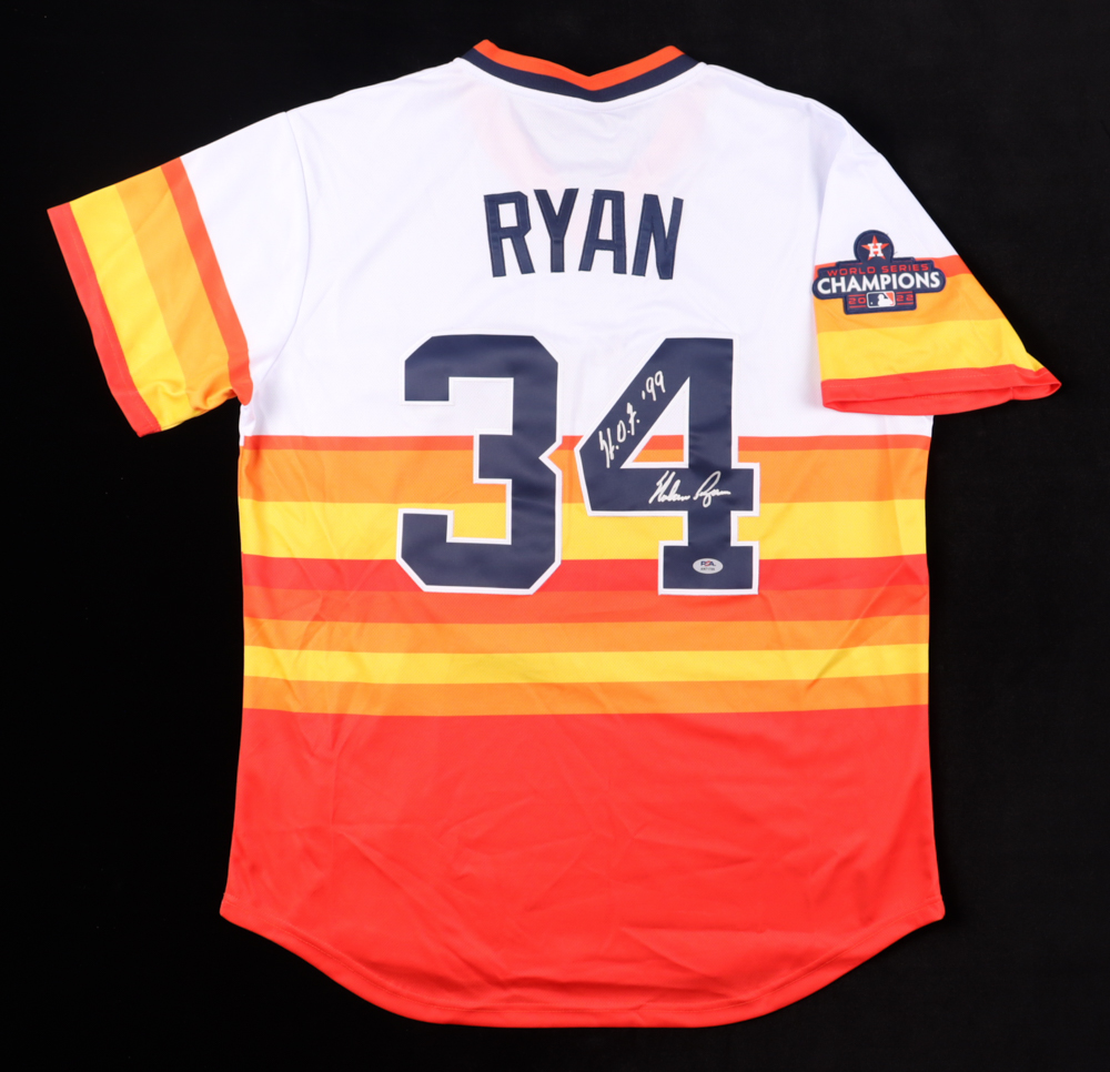 Nolan Ryan Signed Jersey Inscribed "H.O.F. "99" (PSA)