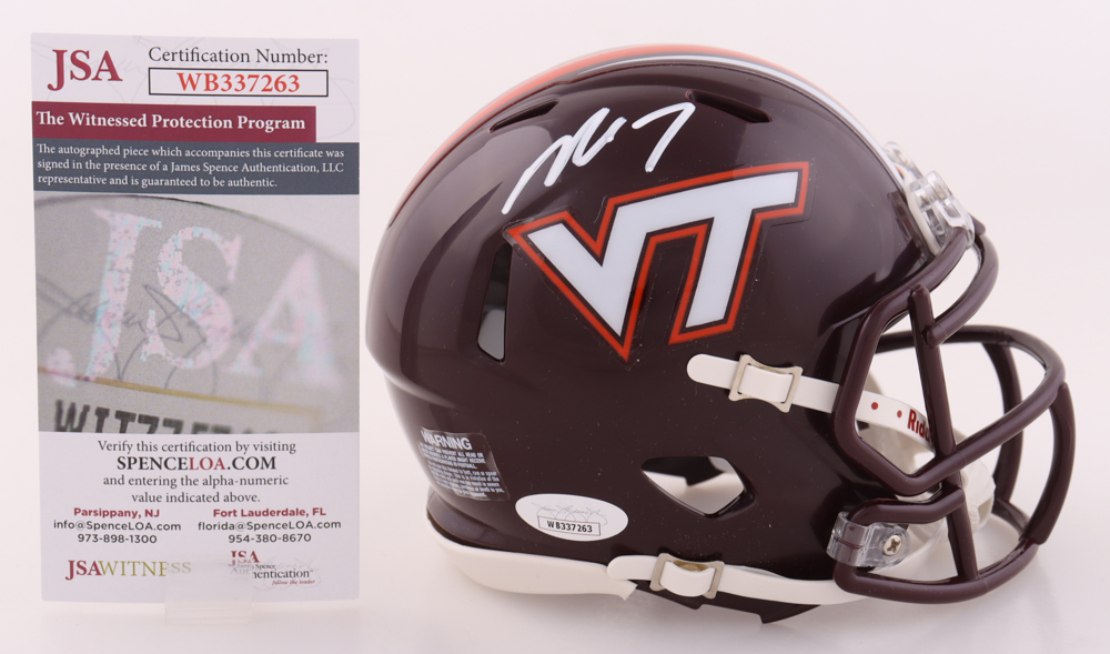 Riddell Virginia Tech Hokies Speed mini helmet. Hand-signed by Michael Vick.