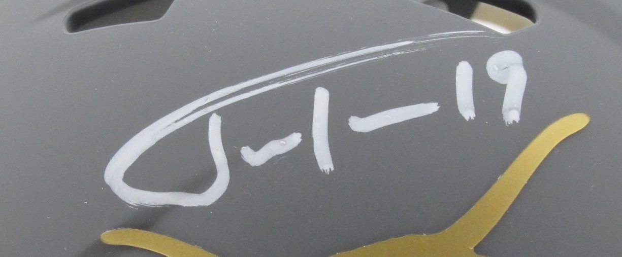 Riddell Texas Longhorns Slate Alternate Speed mini helmet. Hand-signed by Justin Tucker.