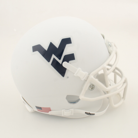 Schutt West Virginia Mountaineers mini helmet. Please note, the helmet is unsigned and there is slight scuffing.